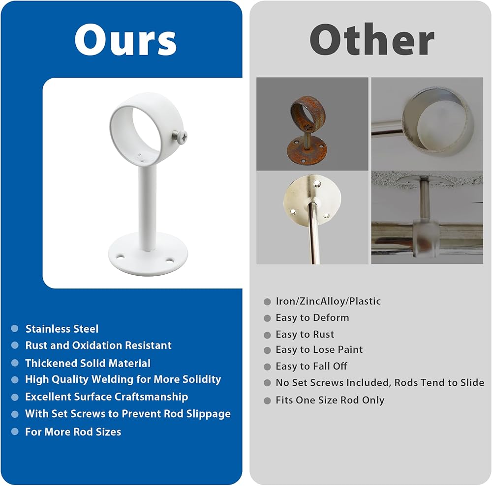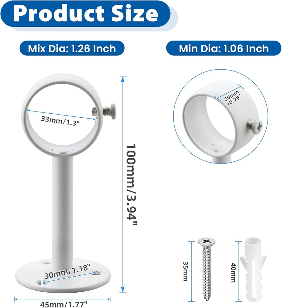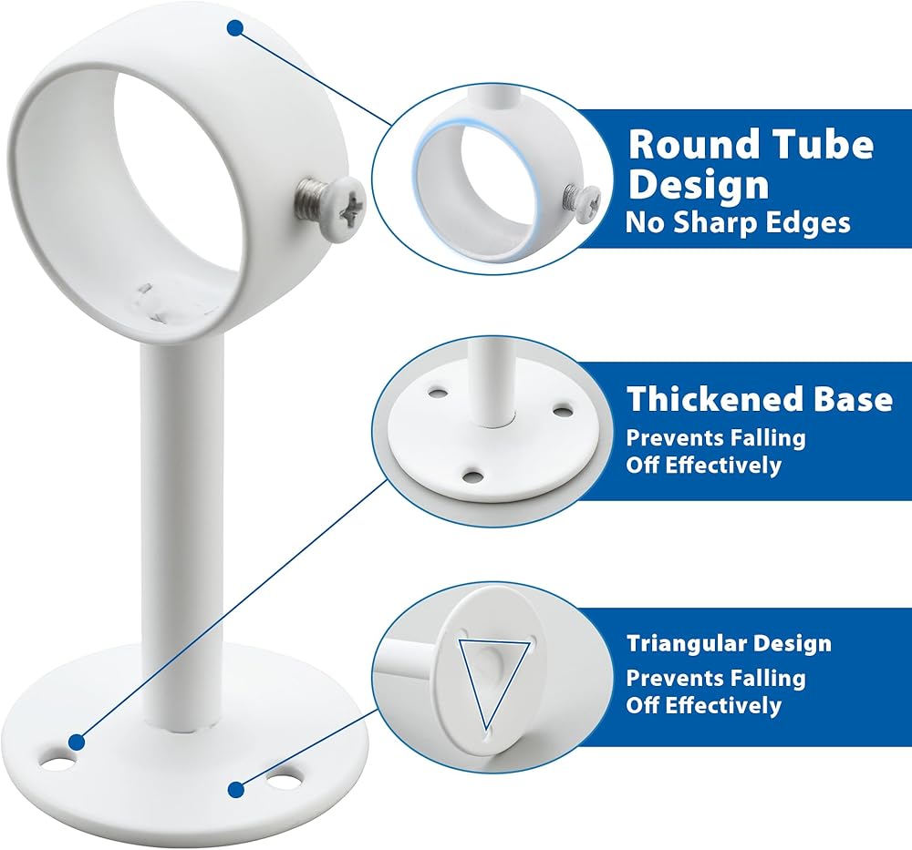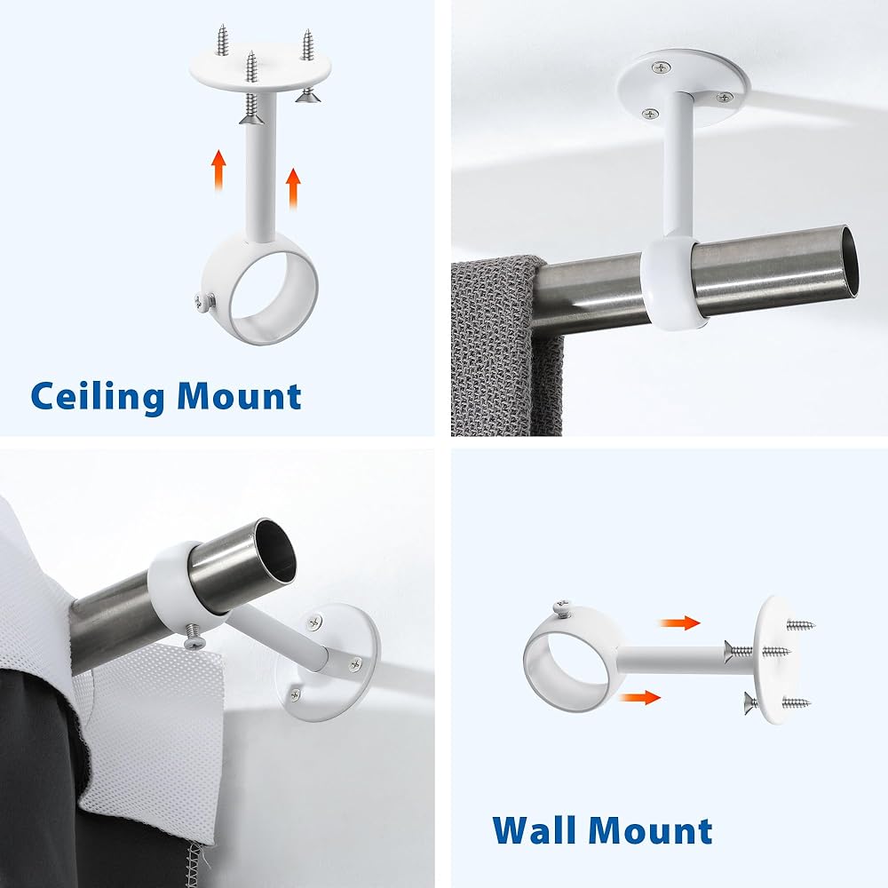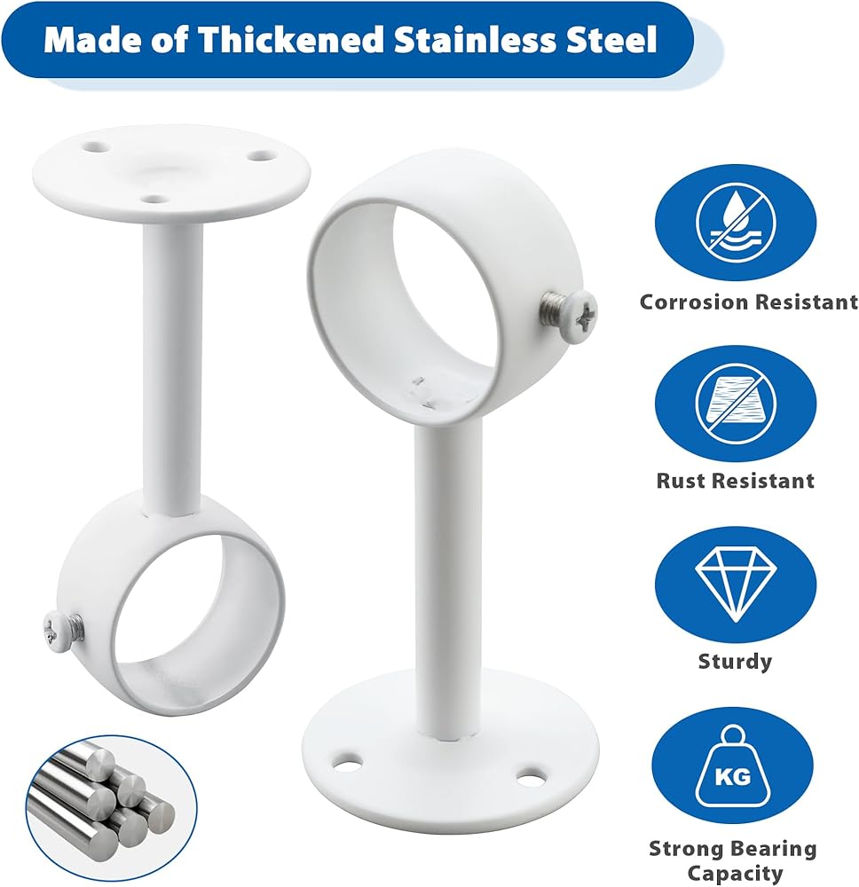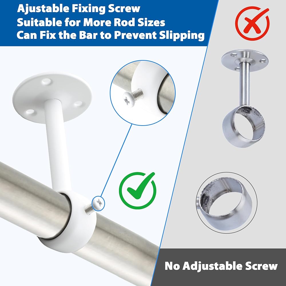 من السهل التثبيت: يأتي كاملة مع البراغي ومرساة الجدران لإعداد سريع وخالي من المتاعب يستغرق دقائق فقط. تعتبر أقواس قضيب الستار هذه متعددة الاستخدامات مثالية للاستخدام في مجموعة واسعة من المواقع ، بما في ذلك الحمامات ، والاستحمام ، والنوافذ ، وخزانة الملابس ، وشرفات ، ومحلات البيع بالتجزئة ، وأي منطقة أخرى تتطلب قضيبًا قويًا