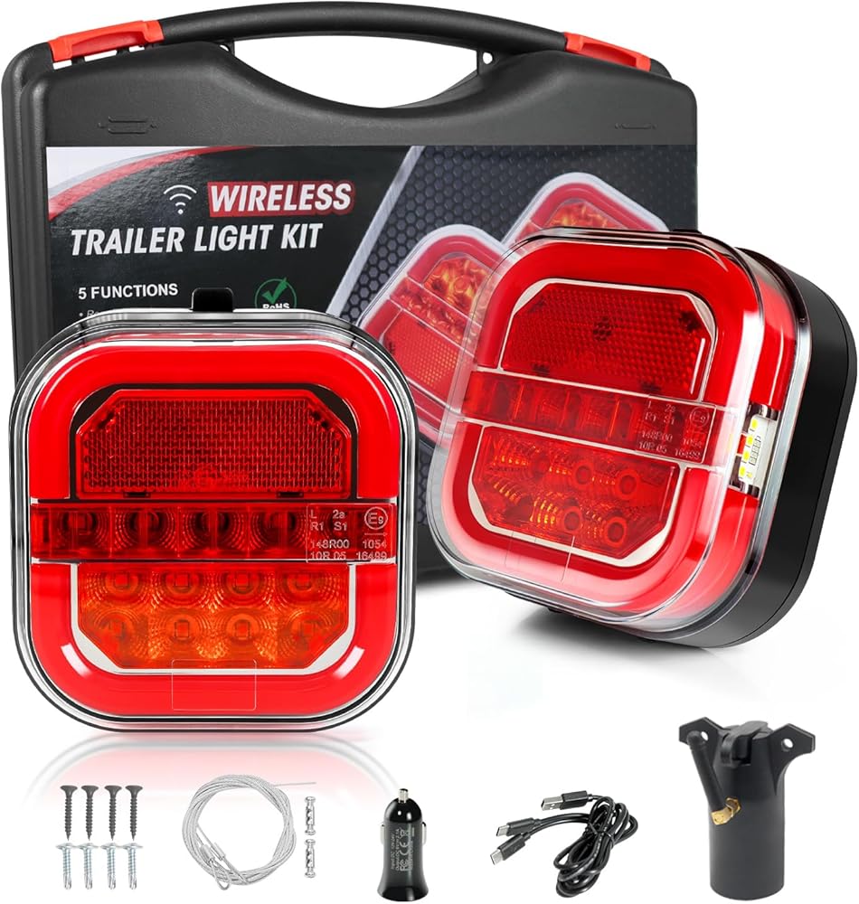 مصابيح مقطورة لاسلكية مغناطيسية ، USB-C قابلة لإعادة الشحن طقم خلفي LED لمقطورة السحب ، إشارات المنعطفات المحمولة الخلفية لفرامل الجري توقف قارب العربة RV ، IP67 مقاومة للماء