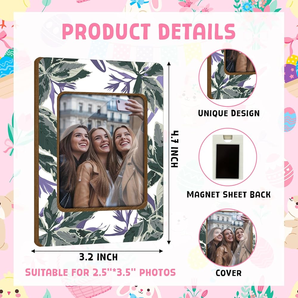 Size: The size of the photo frame is 3.2*4.72 inches. Suitable for 2.5*3.5 inch photos. The photo frame comes with a dustproof plastic sheet to protect your photos from getting dirty. Material: Our magnetic photo frames are made of high-quality wood boards. The back of the photo frame is magnetic. The photo frame can be attached to any place that can be attached, such as a refrigerator, locker, or other metal surface that can be magnetically attached. Gift: It has a beautiful gift box packaging and can be used as a gift for friends or family. This careful design makes it a lasting souvenir that symbolizes your love for your family and friends and your care for the environment. You can decorate your home, office, refrigerator, locker, etc. Convenient to use: Just place your photos in the photo frame and place it on any magnetic surface to instantly display your precious memories. Elegant decoration: These colorful magnetic photo frames add interest to your decoration. You can easily change and update your photo collection. It is a fashionable way to display precious memories.