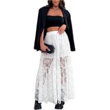 Y2k long lace skirt for women, features elastic waistband, high waisted, ruffled, a line, loose swing pleated long maxi skirt