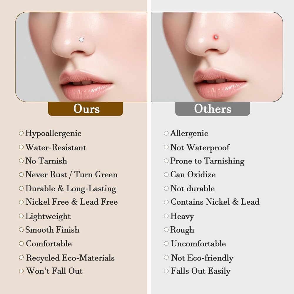 تألق طويل الأمد: الذهب الأبيض المليء بالجراحة الجراحية 316L من الفولاذ المقاوم للصدأ و AAAAAA+ CZ لمنع تشويه ، مما يضمن الحفاظ على تألقهم بمرور الوقت. مصقول بدقة لتحقيق سطح ناعم ولامع بشكل مذهل ، مما يعزز النداء الجمالي العام لخواتم الأنف