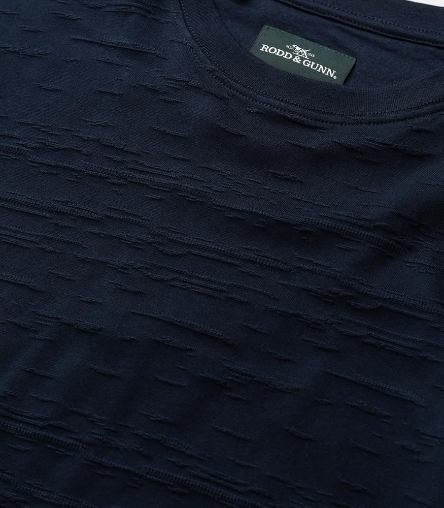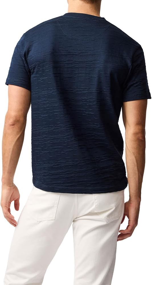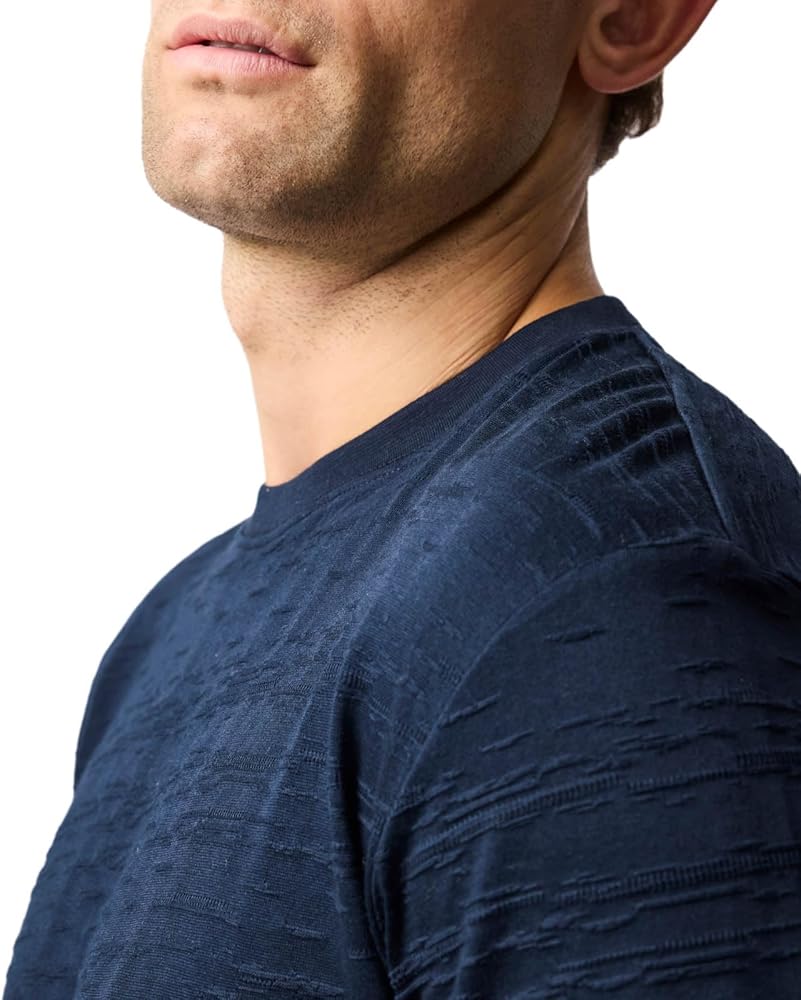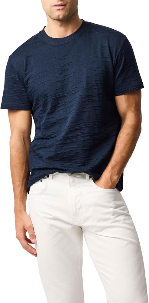 This sports fit crew neck T-shirt in stretch cotton, embodies the casual ease of dressing in the warmer months. Knitted on jacquard looms the make and composition of the garment gives it a subtle textured look and feel.