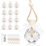 【Every Gift, Every Detail】This complete 12-piece gift set includes:small glass bottles, stoppers, caps, a dropper, white bows, pearl cross charms, organza bags, and thank-you cards. Just fill with holy water and they're instantly ready as baptism favors for guests, recuerdos de bautizo personalizados, or thoughtful Catholic gifts.