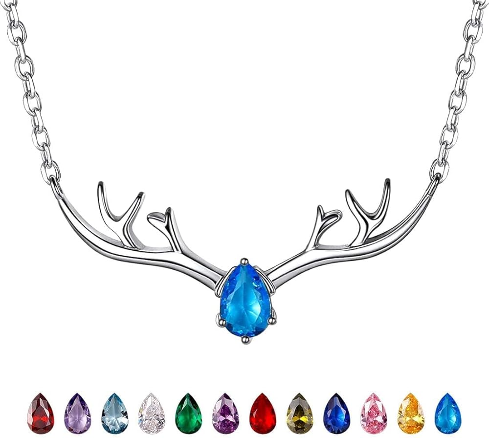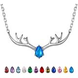 Birthstone Choker Necklace : pear-cut simulated cubic zirconia birthstone inlaid on deer head, shiny and sparkling pretty necklace for women.