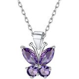 925 sterling silver butterfly necklace for women, sparkle birthstone pendant necklace.