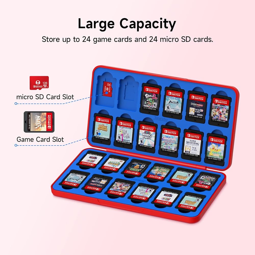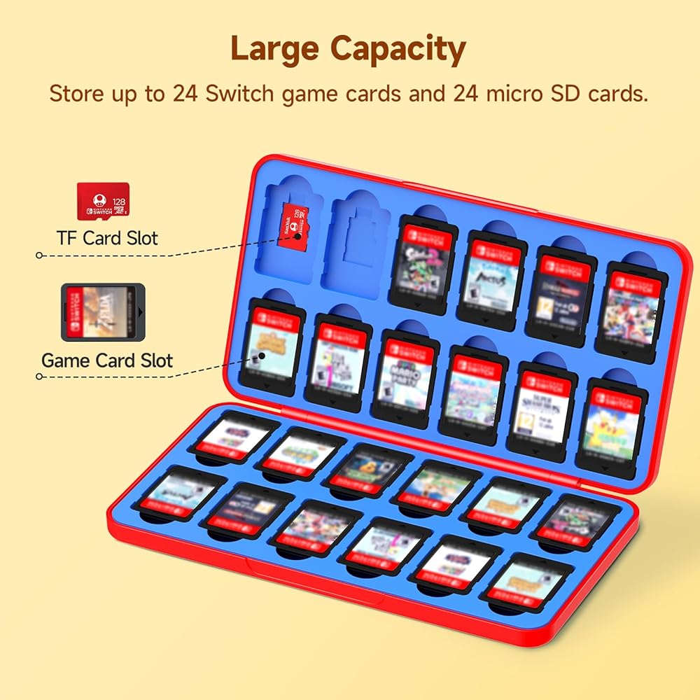 سعة كبيرة: يمكن لجراب البطاقات المصمم بشكل معقول تخزين ما يصل إلى 24 بطاقة ألعاب و24 بطاقة ذاكرة لألعاب Switch NS/Lite/OLED (البطاقات غير متضمنة).