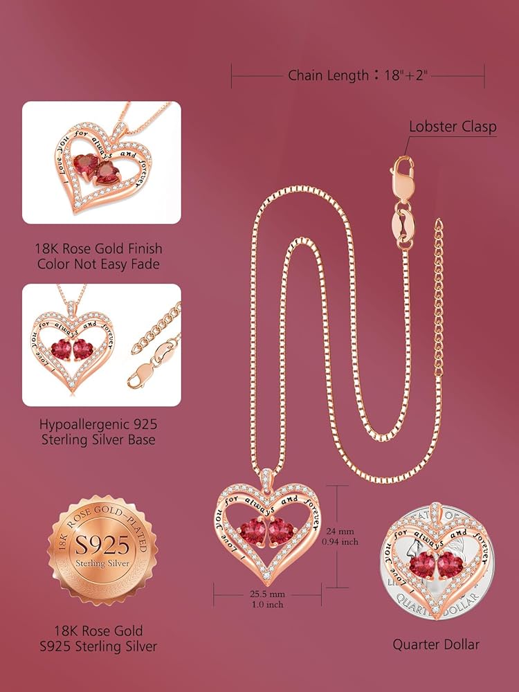 💕12 ألوان Birthstones لمدة 12 شهرًا: 💕 أنا أحبك من أجل قلادة دائمًا وإلى الأبد كهدية مجوهرات أعياد الميلاد لها. Garnet Stone for Jan ، Amethyst for February ، Aquamarine for March ، Diamond for Apr ، Emerald for May ، Alexandrite for June ، Ruby for July ، Peridot for Aug ، sapphire for Pink for Oct ، Citrine for Novem.