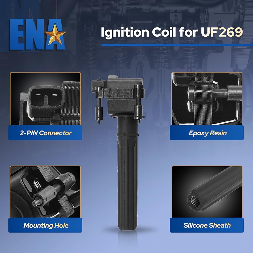 مجموعة ENA من 6 ملفات الاشتعال و Iridium Spark Plug 2000 2001 2002 2003 2004 2005 متوافقة مع Chrysler Dodge Concorde 300 Intrepid LHS Pacifica Prowler Magnum 2.7L 3.2L 3.5L لـ UF269 UF395