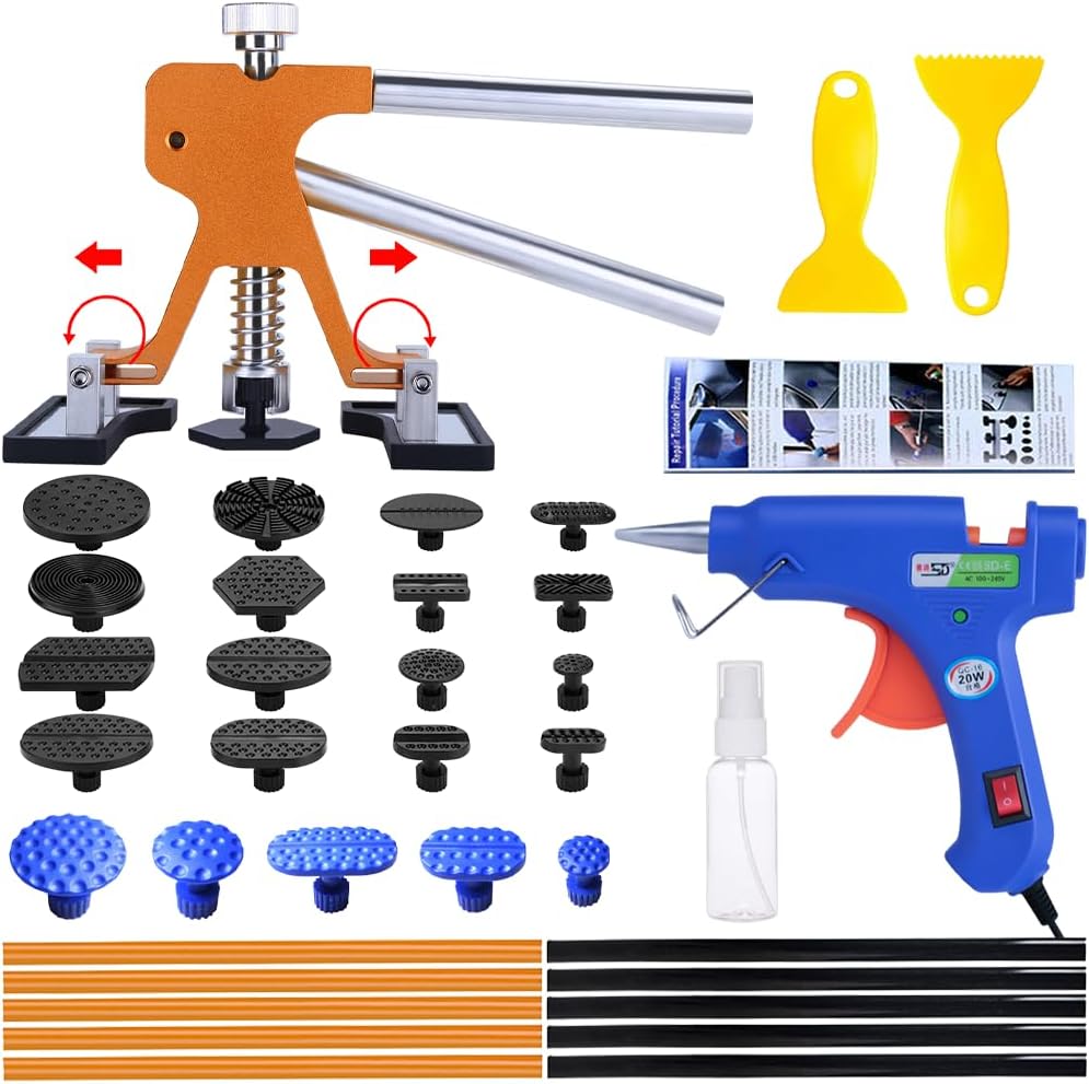 طقم إصلاح Dent Paintless - 36pcs Dent Puller ، مجموعة إزالة Dent مع عروض قابلة للتعديل معتدل ذهبي دنت لإزالة جسم الأوتوماتي