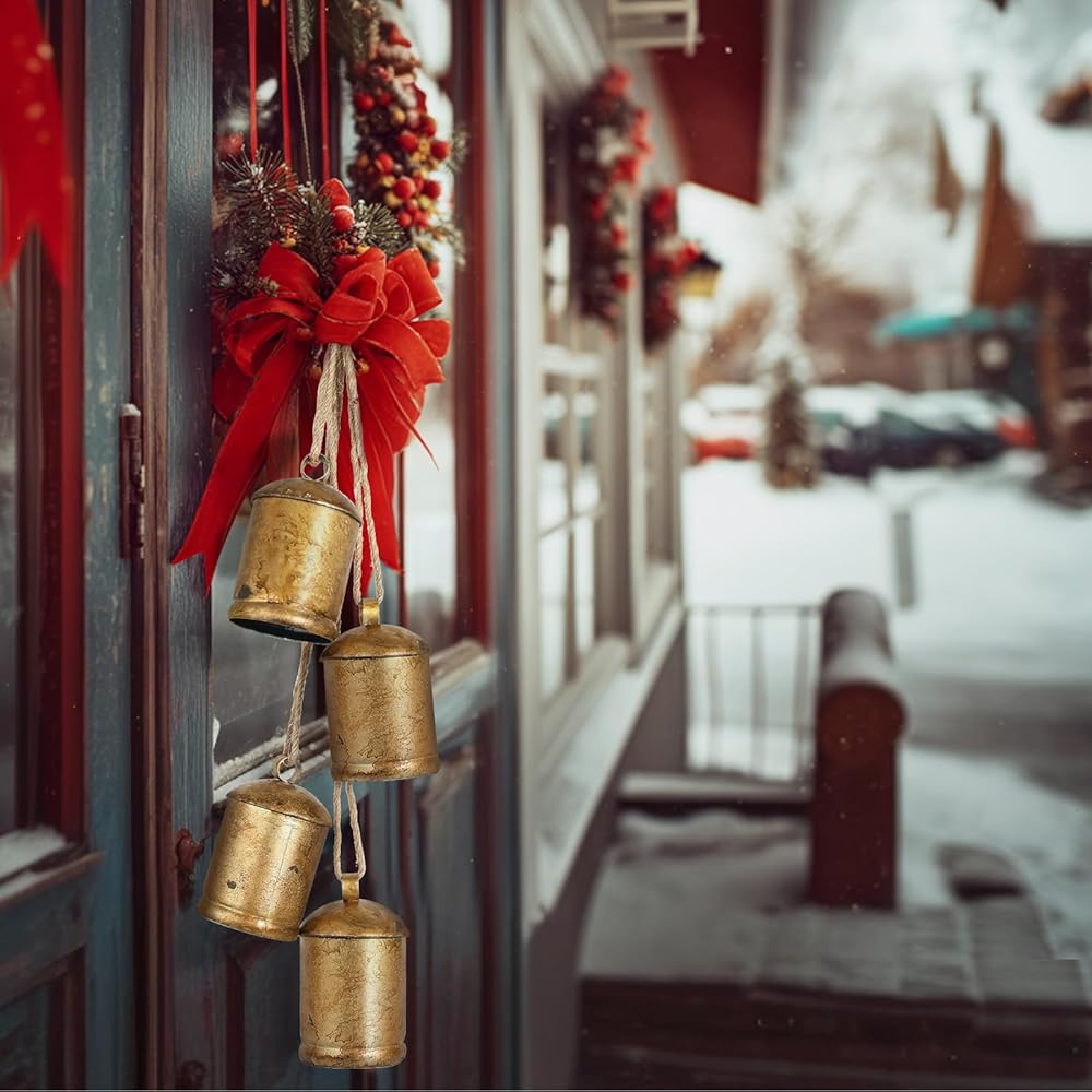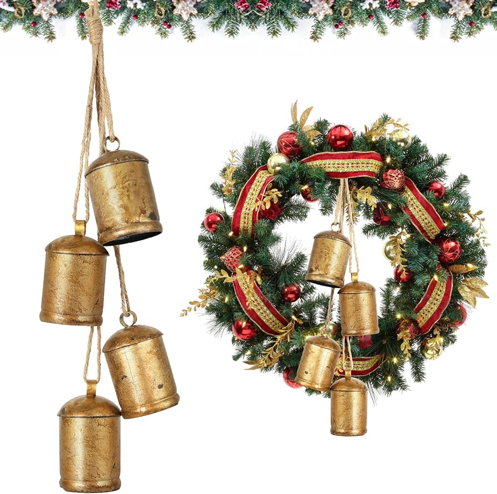 زخارف جرس البقر البقر ، 4 أجهزة كمبيوتر قرة عتيقة الذهب مع جوت معلق الحبل أجراس ديكور للباب منزل عيد الميلاد شجرة إكليل الزهور الزخارف الزخارف عيد الميلاد