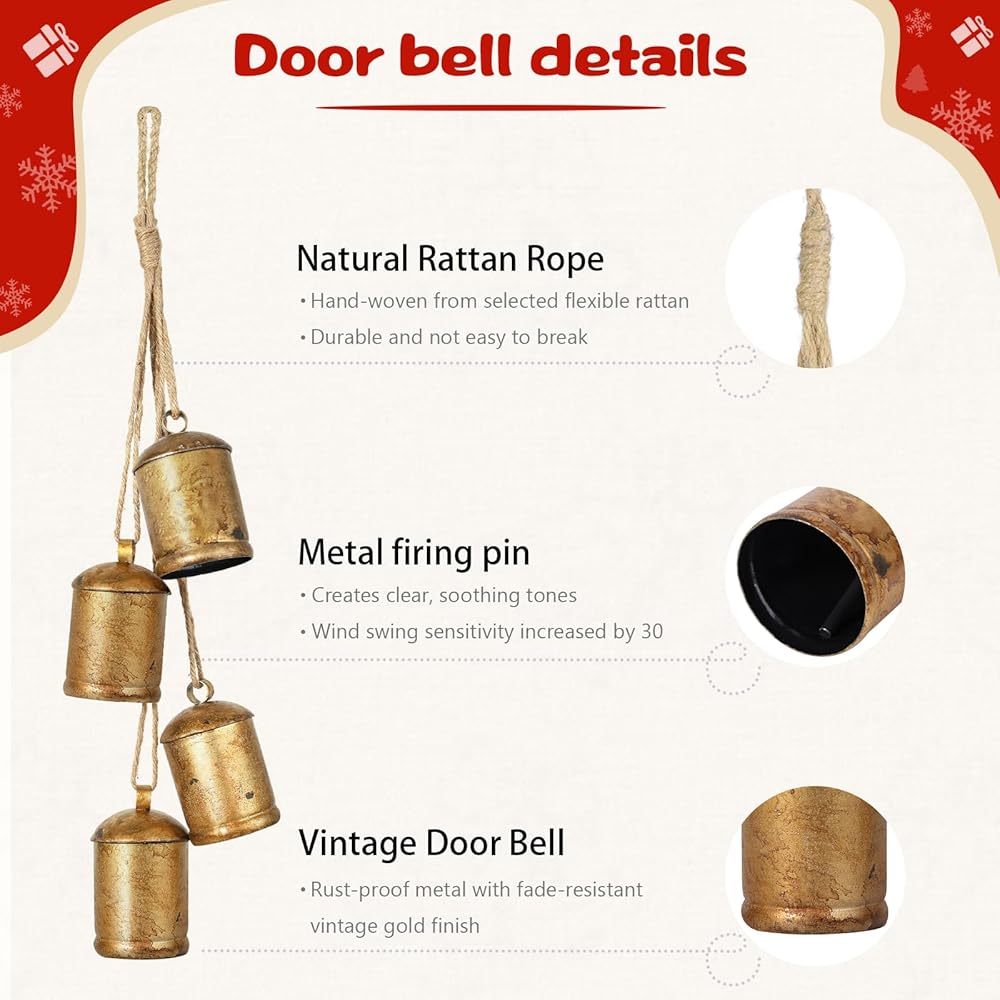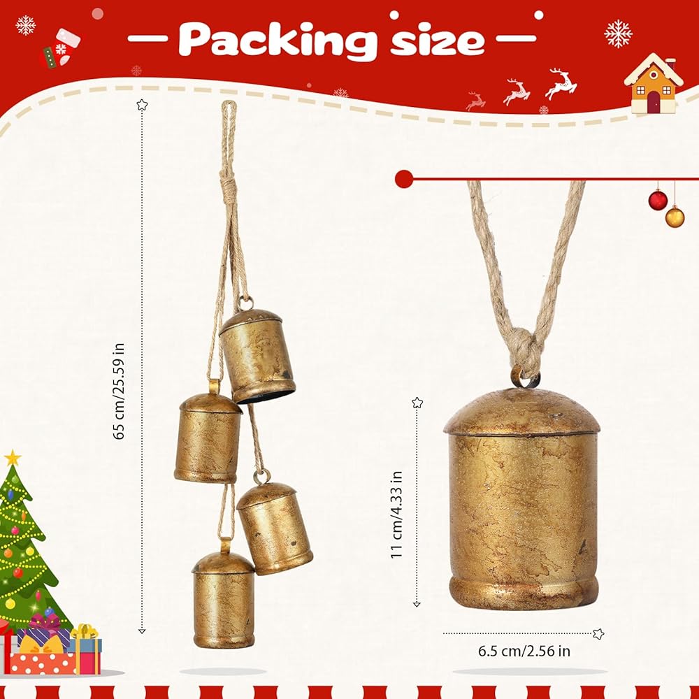 • 【حجم الديكور عيد الميلاد】 ديكور ذهبي عتيق يتكون من 4 أجراس البقر. يبلغ الطول الإجمالي للجرس الزخرفي 25.5 بوصة ، وحجم جرس كبير واحد 4.3 بوصة × 2.5 بوصة ، صغيرة ورائعة. يمكنك ببساطة تزيين خارج صندوق Pakege وإعطاء الجرس المعلق لأصدقائك وعائلتك كهدايا.