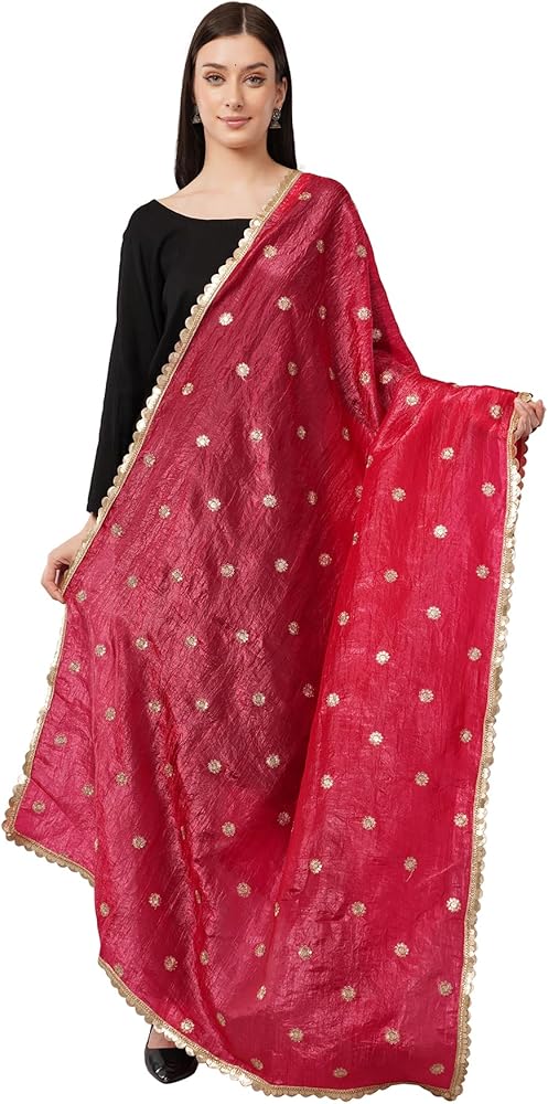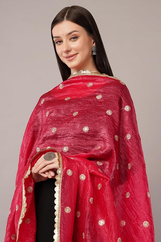 Crush texture art silk dupatta with gold lace—lightweight, flowy, and easy to pair with any outfit. Elevate your ethnic wardrobe with this elegant crush dupatta crafted from vegan silk. Featuring a beautiful crushed texture that adds natural flow and volume, this dupatta is finished with a delicate gold lace border for a touch of festive shine. Lightweight and versatile, it drapes effortlessly over kurtas, lehengas, or suits, making it perfect for both casual gatherings and festive occasions.