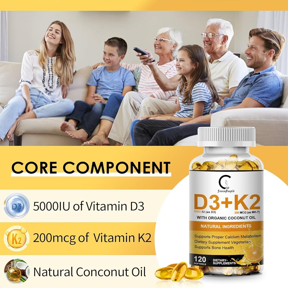 دعم العظام: يعزز صحة العظام ، ويدعم العظام ، والأسنان ، والعضلات ، وصحة المناعة. مزيج من فيتامين D3 و K2 أمر بالغ الأهمية للحفاظ على كثافة العظام الصحية. يساعد فيتامين D3 في امتصاص الكالسيوم ، في حين يوجه فيتامين K2 الكالسيوم إلى العظام ، مما يقلل من خطر التكلس الشرياني