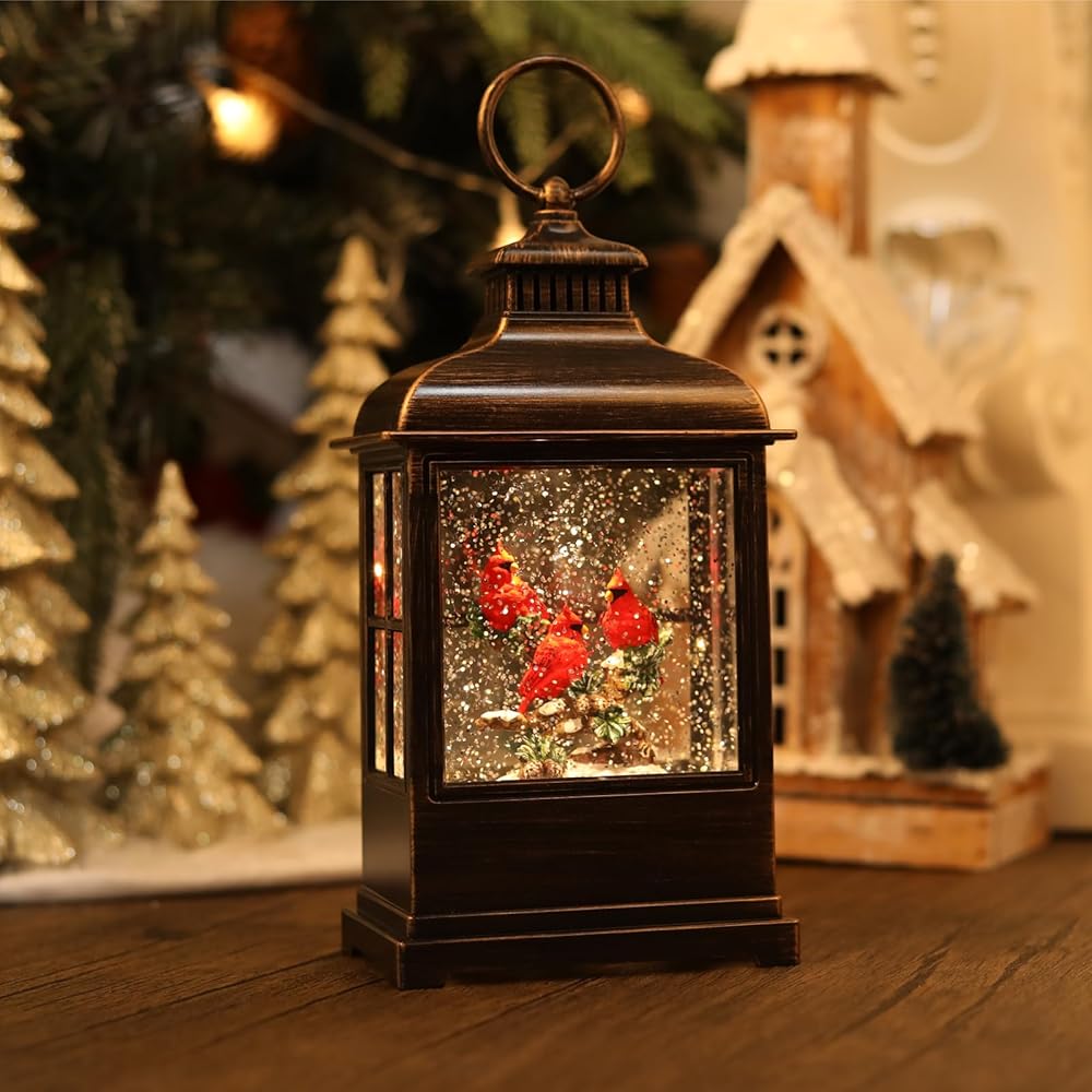 • ديكور الكاردينال: يتميز الفانوس الكاردينال الثلج غلوب الشكل بأشكال أبيض للطيور مع 3 كرادلة حمراء زاهية تميل على فرع في الداخل. التفاصيل المعقدة والألوان الغنية تجعلها محورًا مثاليًا للعطلات لعلاج الرف أو الطاولة