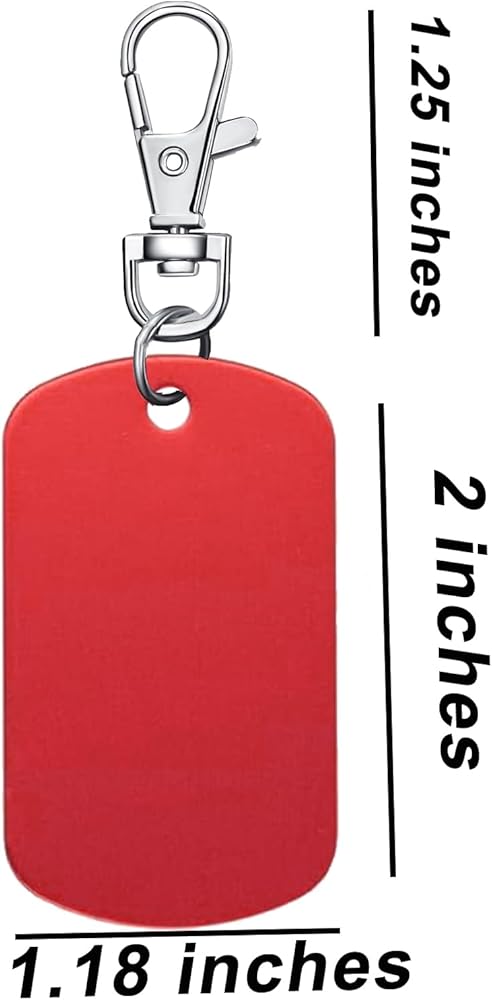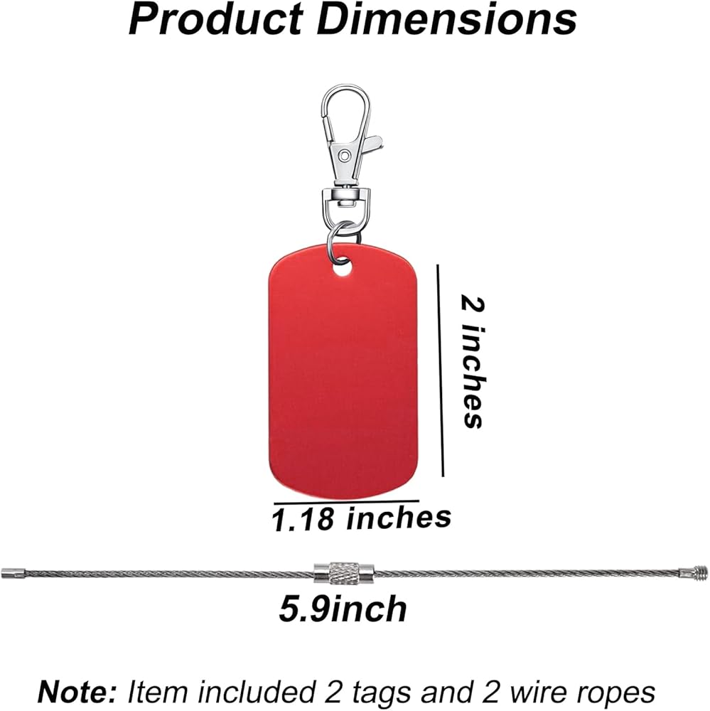 الحزمة: 2 حزمة متينة من الألومنيوم المتين ، حجم العلامات هو: 1.18 "واسعة ، 1.97" عالية ، حلقات السلسلة من الفولاذ المقاوم للصدأ حلقة مفتاح ، lenght 5.9 بوصة.