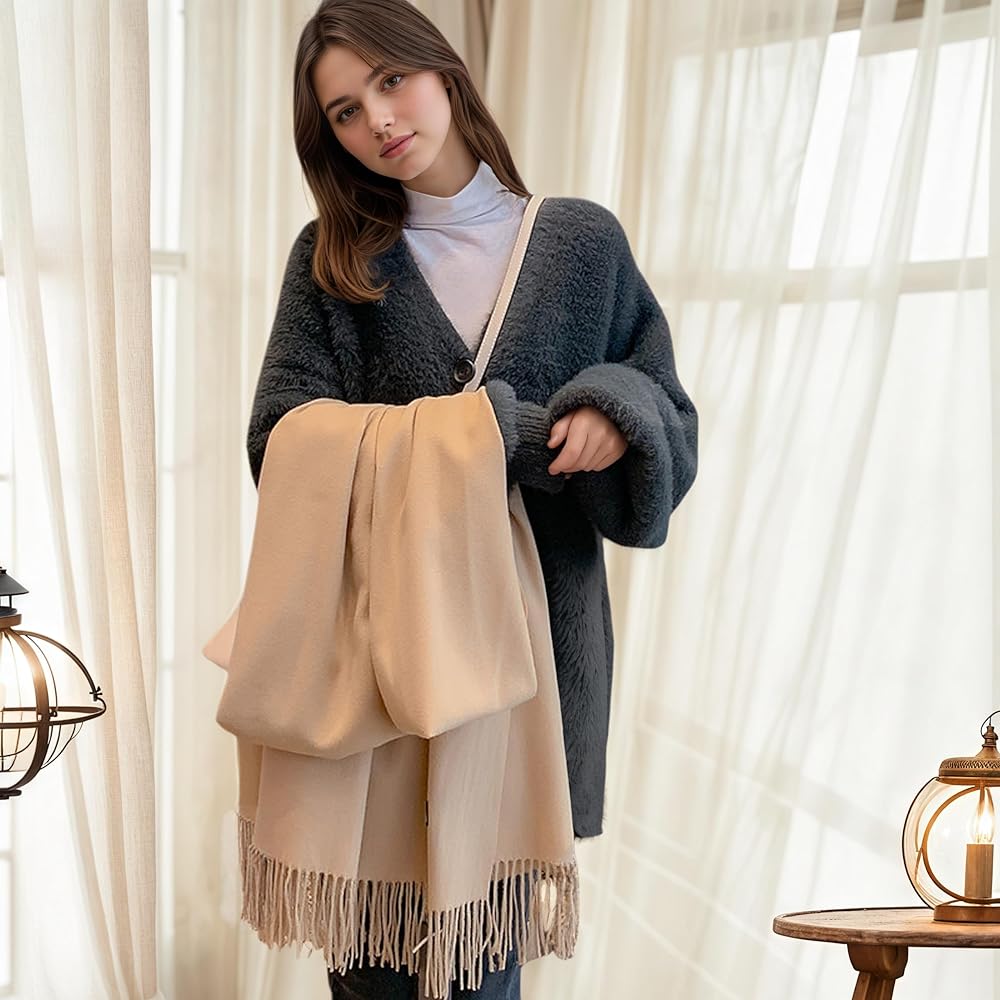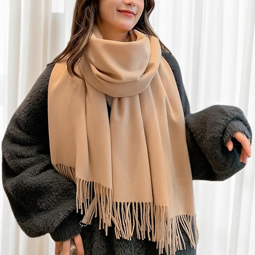النمط الكلاسيكي: شالات الباشمينا واللفاء ذات اللون الصلب والتصميم الكلاسيكي مع الشرابات ، من السهل ارتداء الأوشحة الشتوية للنساء مع الملابس الأخرى