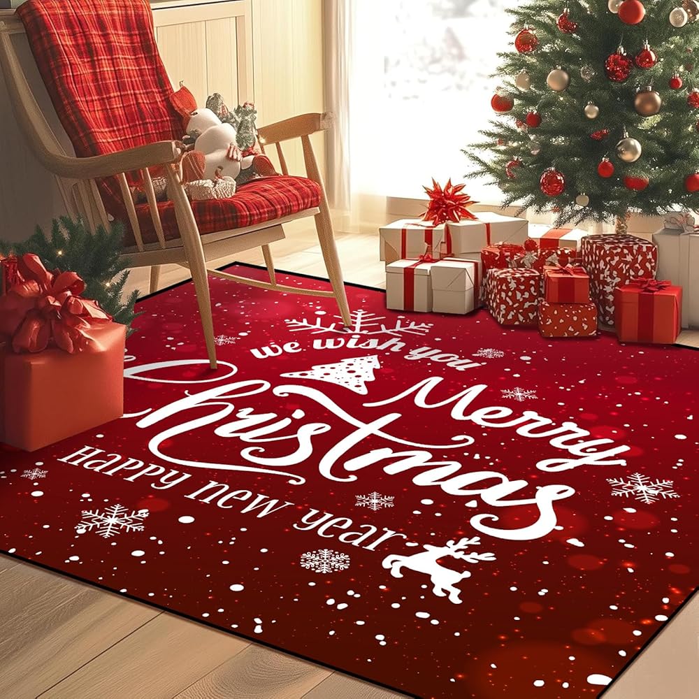 Merry Christmas Design: يتميز سجادة عيد الميلاد الحمراء والأبيض بتصميم خطوط نعمة جنبًا إلى جنب مع عناصر من رقاقات الثلج وعيد الميلاد الفاسد ، مما يضيف أسلوبًا احتفاليًا ومرحلاً في أي غرفة. إنه يقدم هدية مثالية للعائلة والأصدقاء والمراهقين والأطفال على حد سواء.