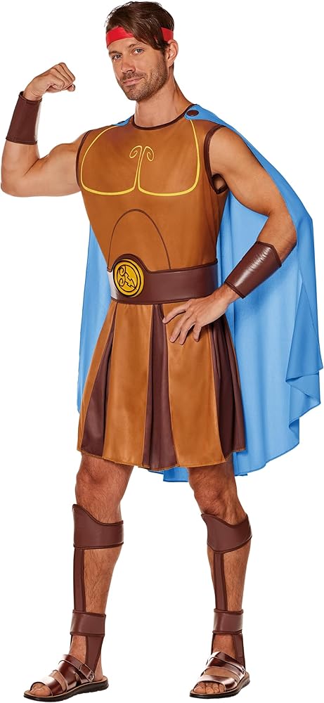 This officially licensed Adult Hercules Costume will take you from zero to hero in seconds! Dress up as your favorite Disney character when you slip into this tunic with an attached cape. This set also includes a headband, belt, armbands, and leg wraps.