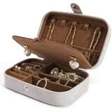 【التصميم العملي】 تصميم السوستة يجعل صندوق المجوهرات ليس من السهل فتحه أثناء السفر ، ويمكنه الاحتفاظ بمجوهرات منظمة جيدًا ، ويمكن أن تجعلك مرآة اللوحة الوسطى ترتدي المجوهرات أكثر ملاءمة.