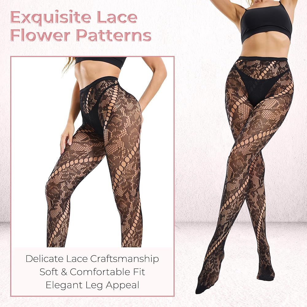 تصميم منقوش أنيق: يتميز بأنماط زهور عصرية، مع خصر عالٍ وشريط مطاطي مانع للانزلاق؛ هذه الشباك السوداء والجوارب الضيقة ذات الأرجل النحيفة بشكل جميل، مما يضيف حافة فريدة لمظهرك مع لمسات من حجر الراين لمزيد من التألق