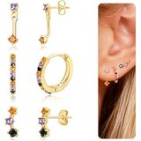 Nanafast 14K الذهب مسمار الأقراط مجموعة للنساء Huggie هوب ترصيع حجر الراين البطانة مداخن لطيف الغضروف أقراط هيبوالرجينيك مجموعة مجوهرات أنيقة