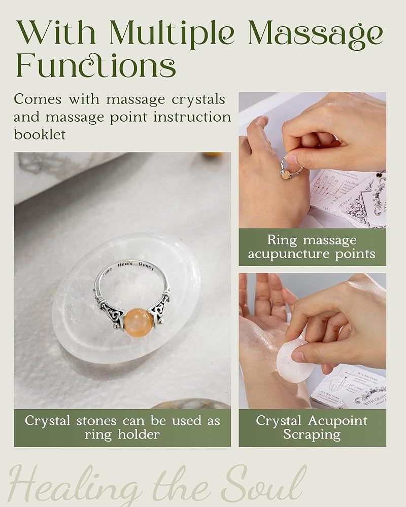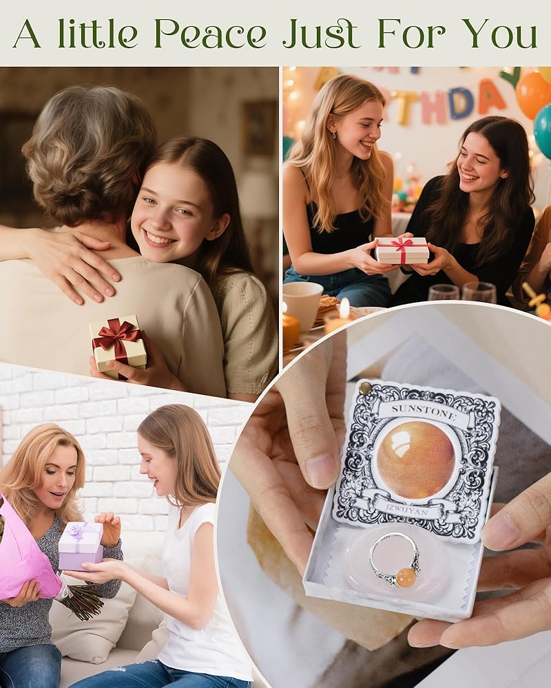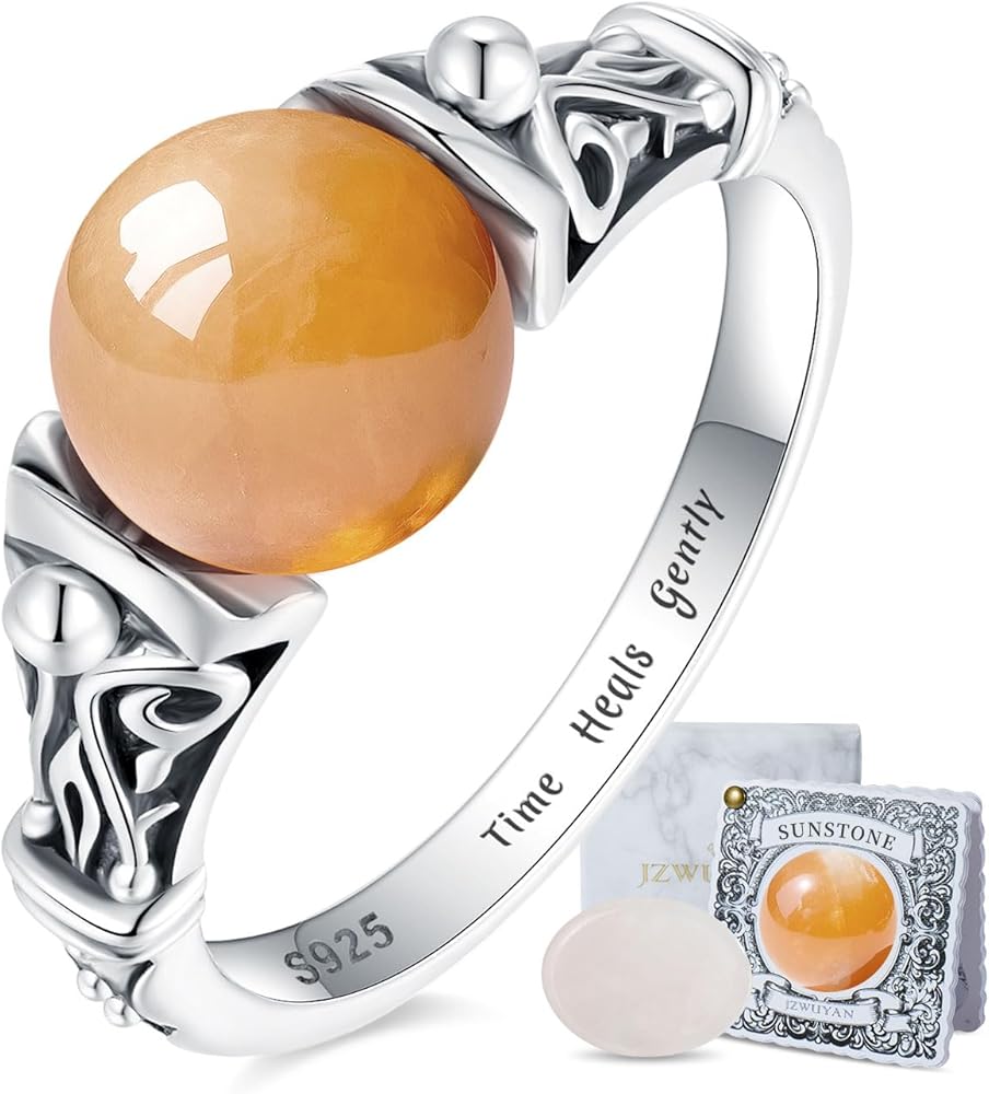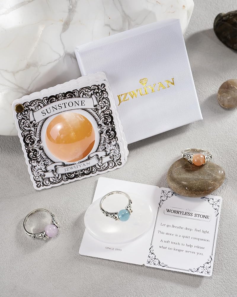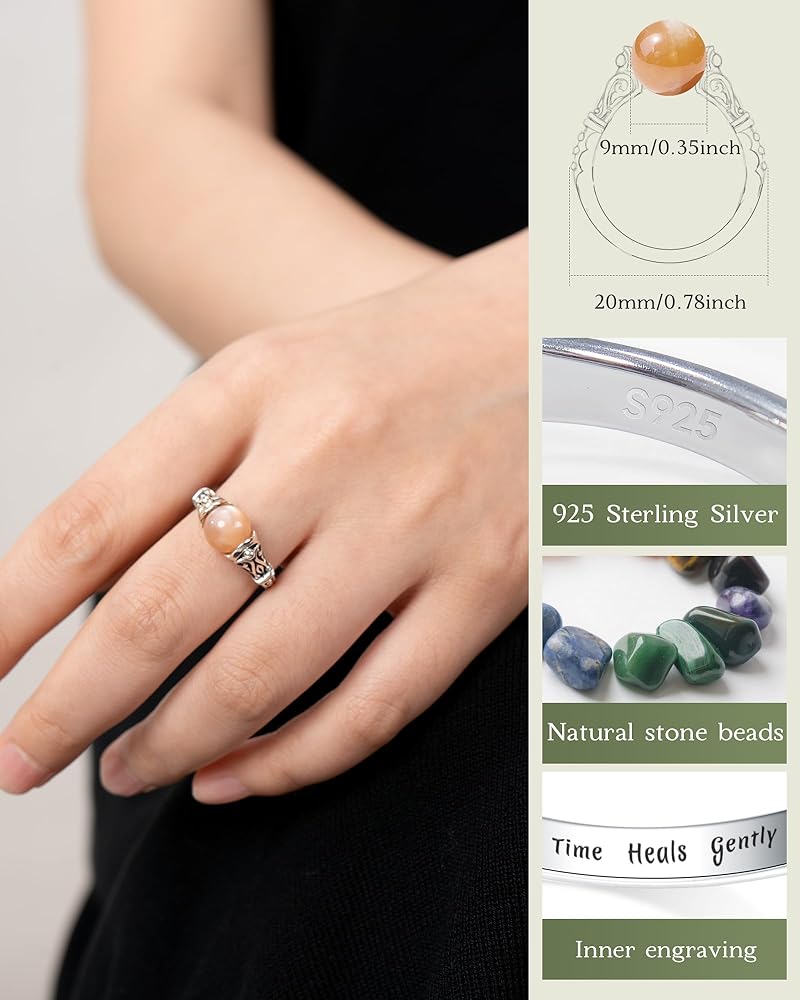 This JZWUYAN spinner ring is crafted from genuine 925 sterling silver and set with a natural polished Amethyst stone, the traditional birthstone of February. Known as the “Stone of Peace,” Amethyst is believed to promote calm, balance, and spiritual clarity. It symbolizes sincerity, wisdom, and inner strength, making each ring not only beautiful but deeply meaningful. The smooth spinner design provides a discreet and calming way to fidget, helping ease anxious thoughts, relieve stress, and restore focus throughout the day. Celtic-inspired carvings add elegance and symbolic charm, while the inside engraving “Time Heals Gently” serves as a daily reminder of resilience, comfort, and gentle healing. Presented in a beautifully designed gift box with booklet and bonus crystal, this ring makes a thoughtful and symbolic gift for birthdays, Valentine's Day, Christmas, Mother's Day, anniversaries, or any occasion. Whether worn for its calming benefits, as a 2nd month birthstone, or as a meaningful token of love, this Amethyst spinner ring blends beauty, symbolism, and function into a timeless companion for life's journey.