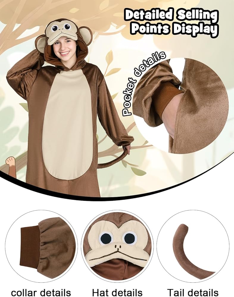 🐻 تصميم دب ثلاثي الأبعاد محبوب - آذان مستديرة ووجه مطرز ناعم يضفي سحرًا على فستان الدب ذو القلنسوة هذا. مثالية لعشاق أزياء الهالوين والحفلات التنكرية والحيوانات