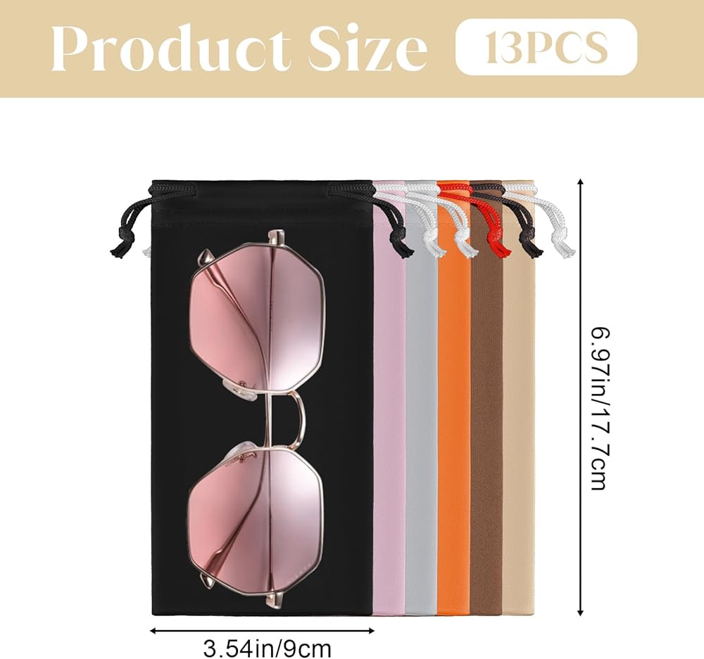 YBEATY 13 Pcs Microfiber Sunglasses Pouch Travel Eyeglasses Sleeve Case Soft Drawstring Glasses Storage Bag for Watch Jewelry Smartphone Call Phone