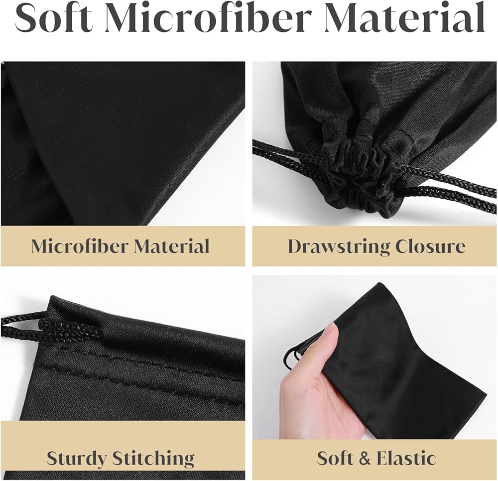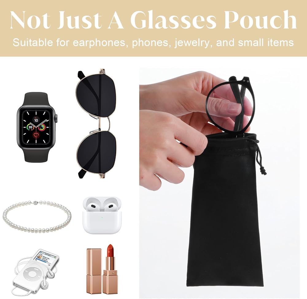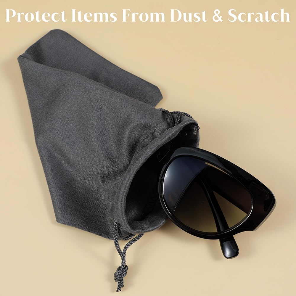 【Easy to Use】Eye glasses cloth covers are designed with simple drawstrings. Microfiber jewelry storage case is easy to open and close. Sunglass pouch case is convenient for accessing sunglasses