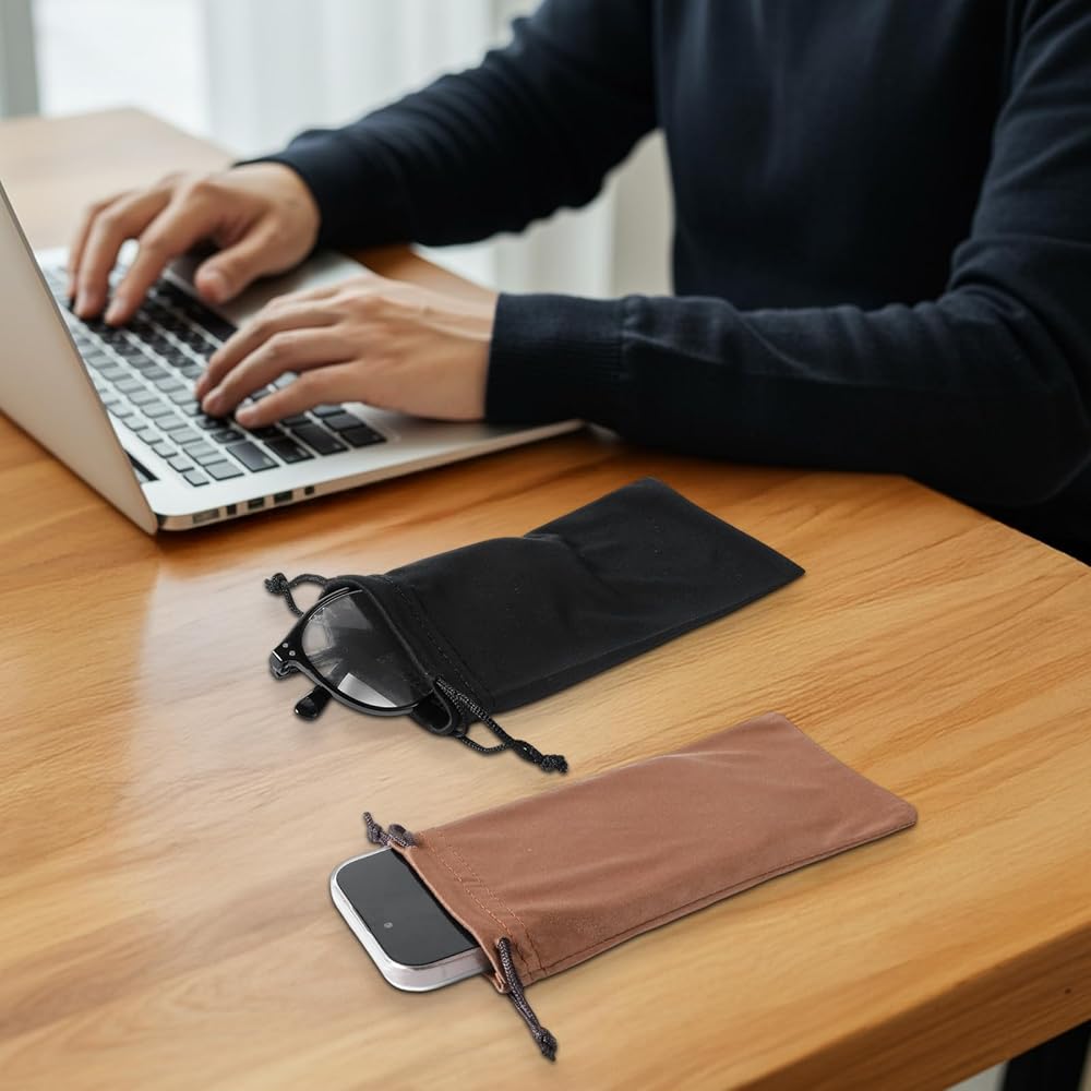 【Versatility】Eyeglass drawstring bag is not only suitable for sunglasses. Eyeglass drawstring sleeve can also be used to store other small items. Microfiber sunglasses pouch can store headphones, USB drives and mobile phones