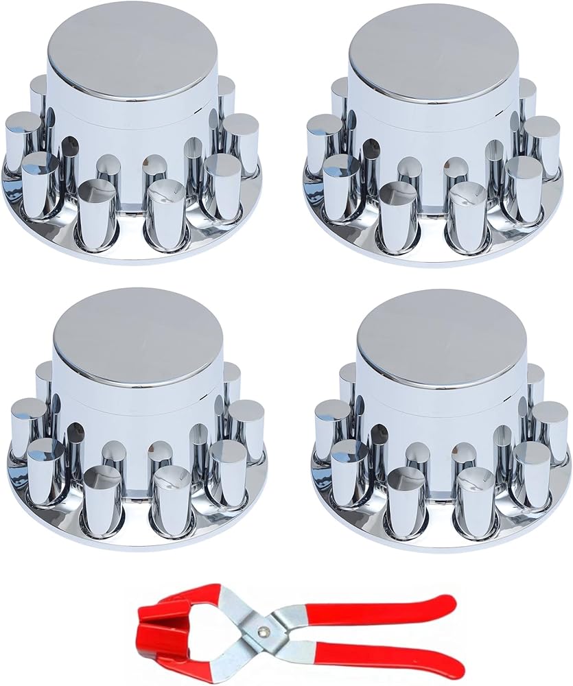 JESONN 4 PCS of Chrome Plated ABS Plastic Standard Rear Axle Wheel Cover with 33mm*3-1/2 Inch Screw-on Lug Nut Covers for Semi Trucks