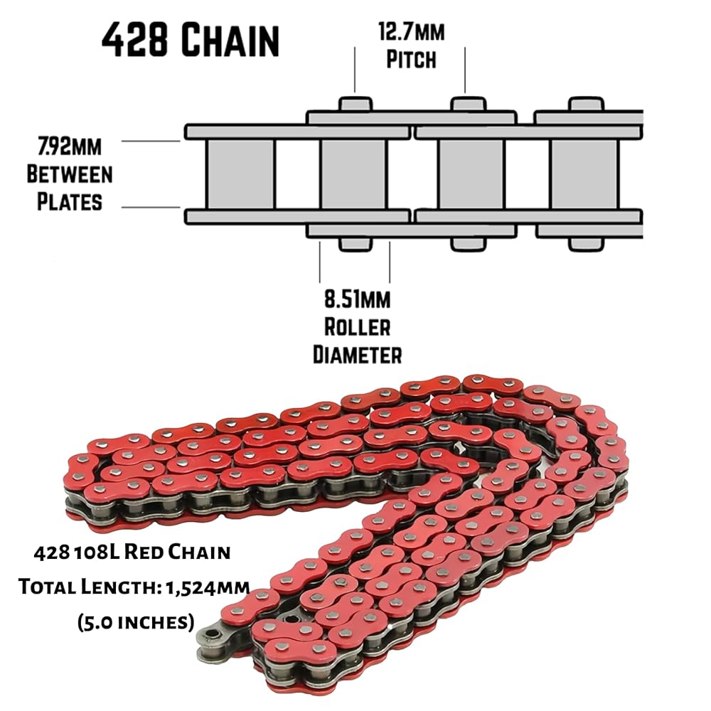 DREAM MOTION Motorcycle 428 Chain 108 Links Drive Chain Transmission System Parts for Honda Kawasaki Yamaha 125cc ~ 250cc SSR YCF Street Bike Quad Scooter ATV Dirt Pit Bike Accessories (أحمر)