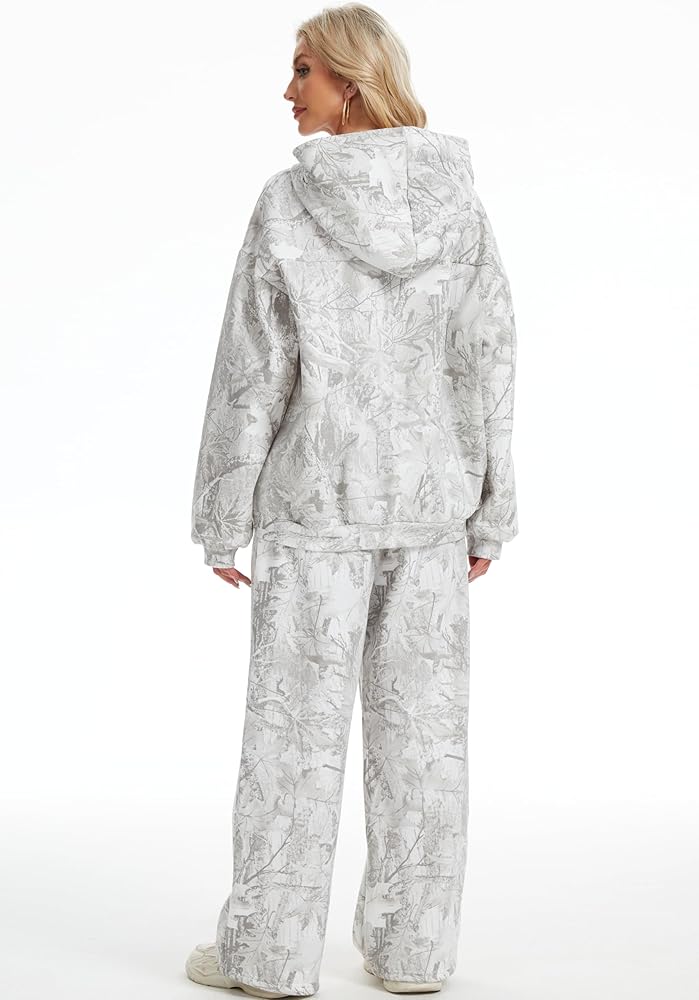 المطابقة: ملابس الخريف المطابقة المصممة للنساء توفر الوقت والجهد، وتجمع بين سويت شيرت مموه بغطاء للرأس مع بنطال رياضي بأرجل واسعة للحصول على مظهر عصري وسهل. ارتديه كبدلة رياضية كاملة للمناسبات الكاجوال أو امزجيه ومطابقته مع الجينز أو الركض أو السراويل القصيرة أو البنطلون أو الأحذية الرياضية أو الأحذية الكاجوال لإنشاء أنماط متعددة الاستخدامات