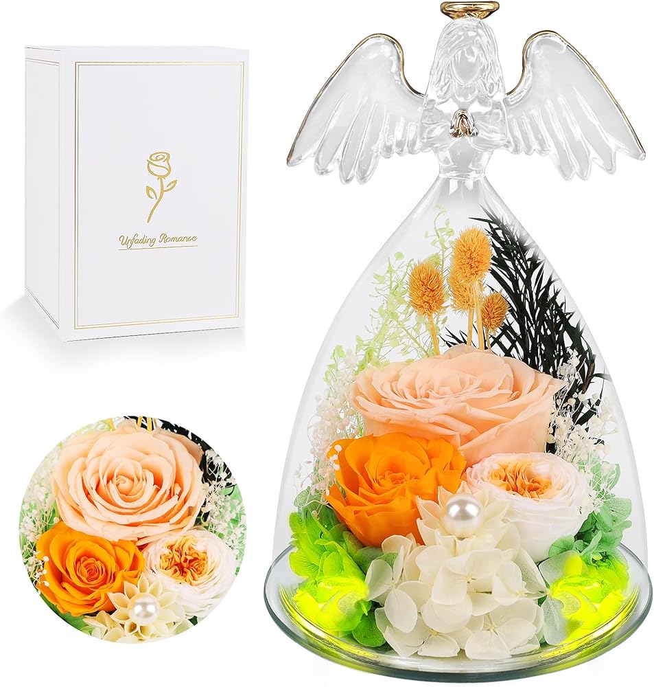 هدايا YOFIT للنساء الأم - وردة عيد الميلاد المحفوظة في تمثال ملاك زجاجي مع ضوء للجدة والأخت والزوجة والابنة - عيد الميلاد الفريد لها (الشمبانيا)