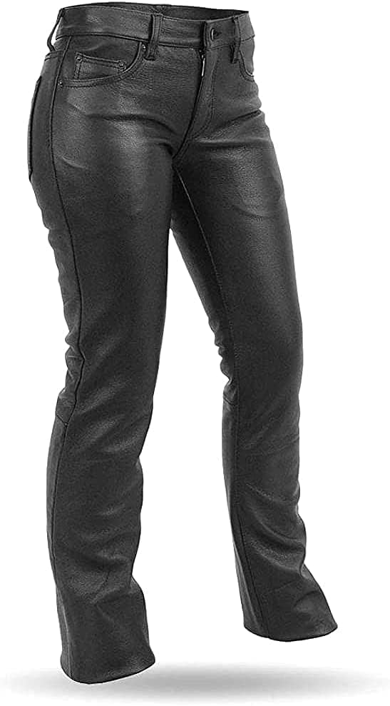Natural buffalo women's mid weight premium smooth leather pants is used for comfort and flexibility.