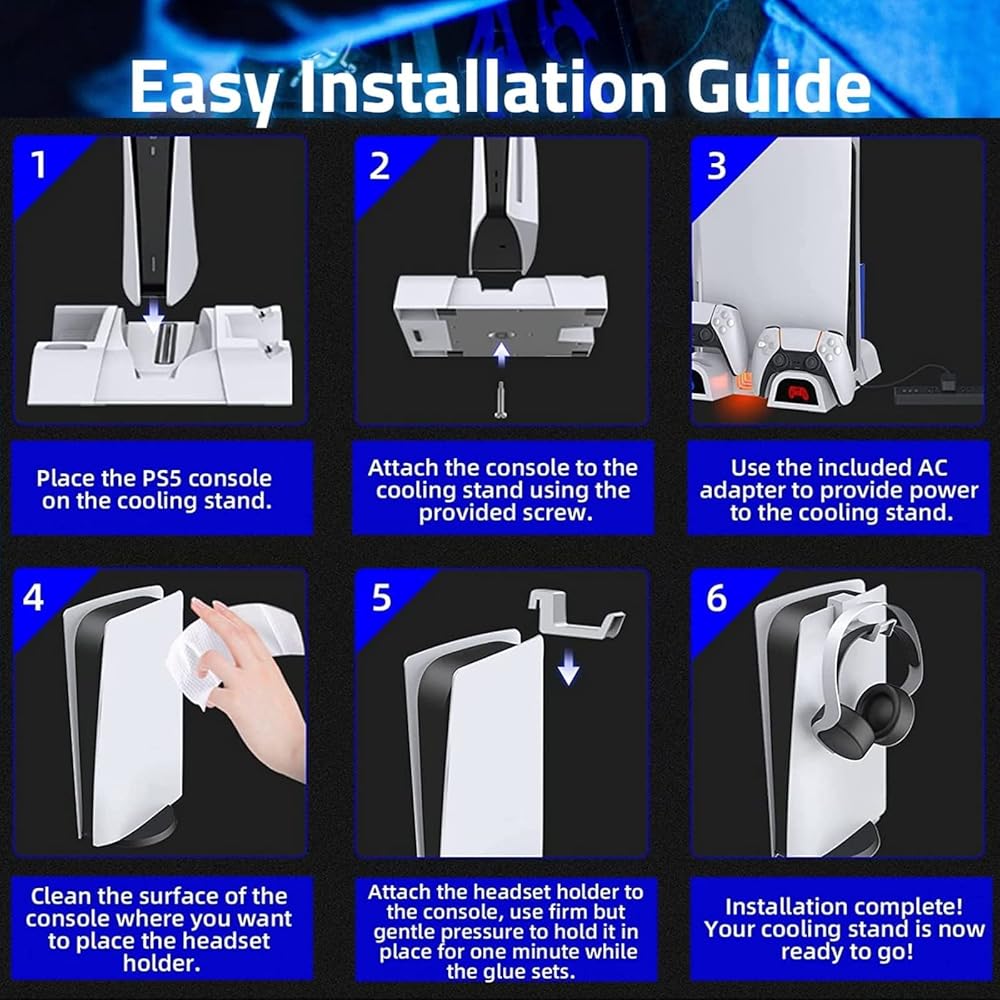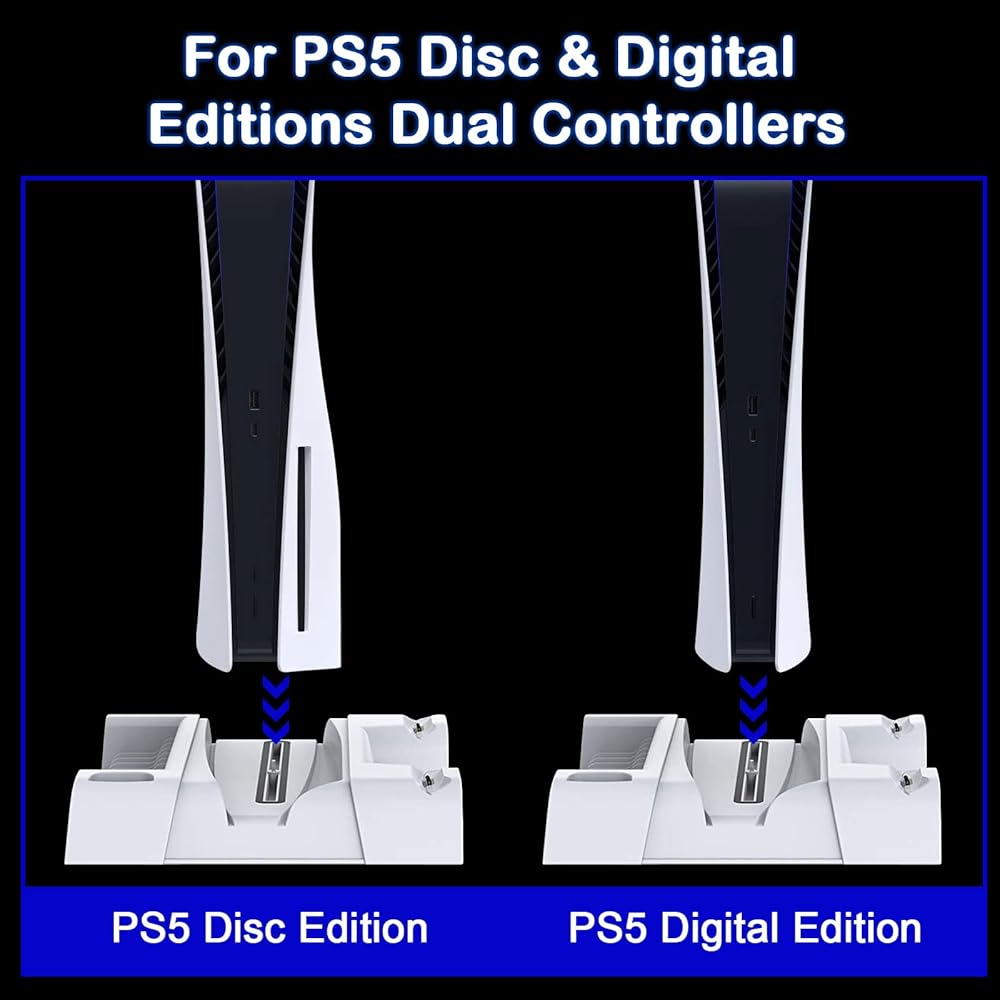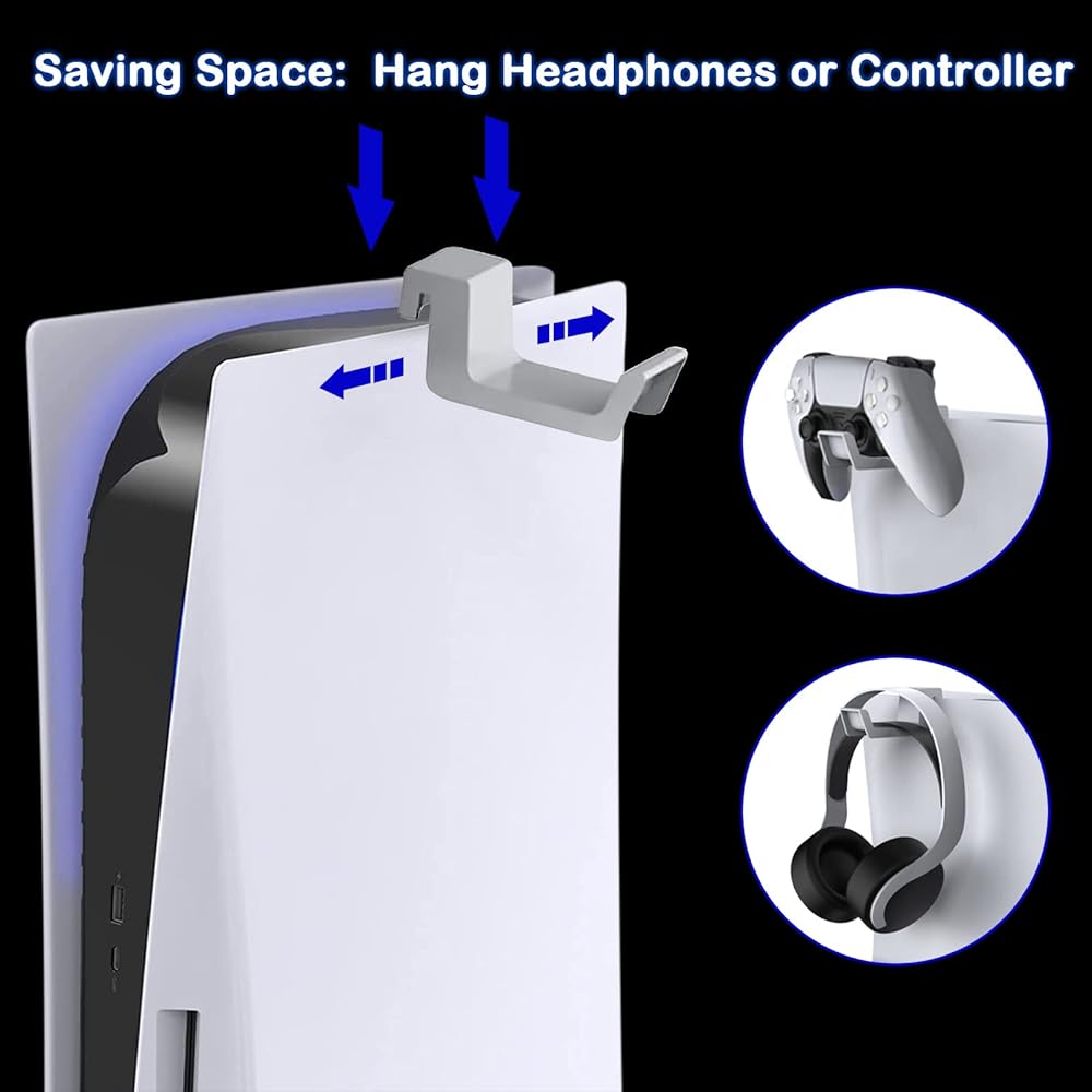 حامل تبريد عمودي TOPAD مع حامل سماعة الرأس ومحول تيار متردد لملحقات PS5، لأقراص PS5 والإصدارات الرقمية وشاحن وحدات تحكم مزدوجة مع مراوح 10 منظم رفوف الألعاب باللون الأسود