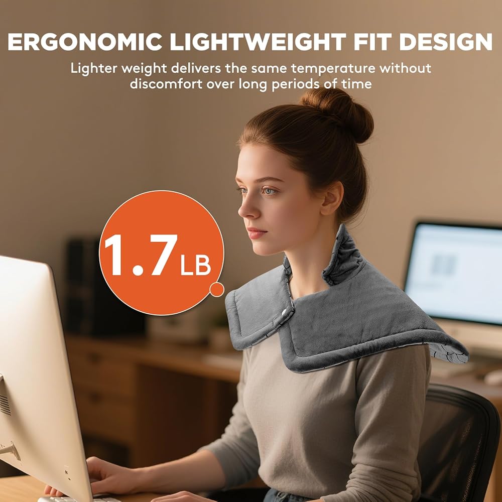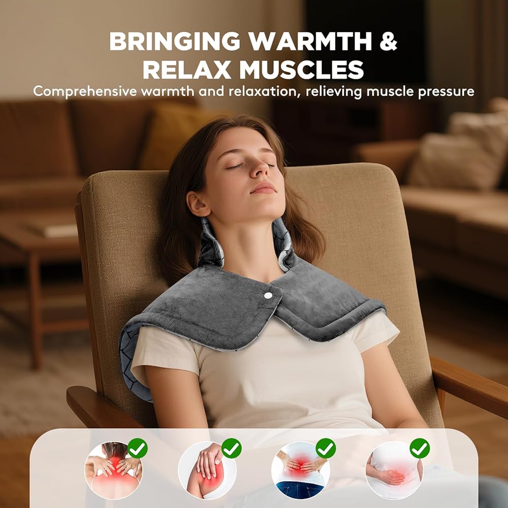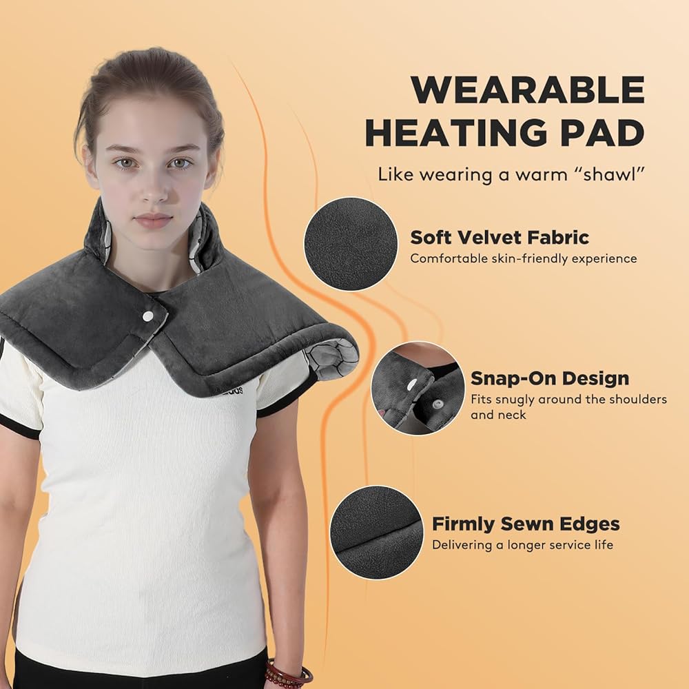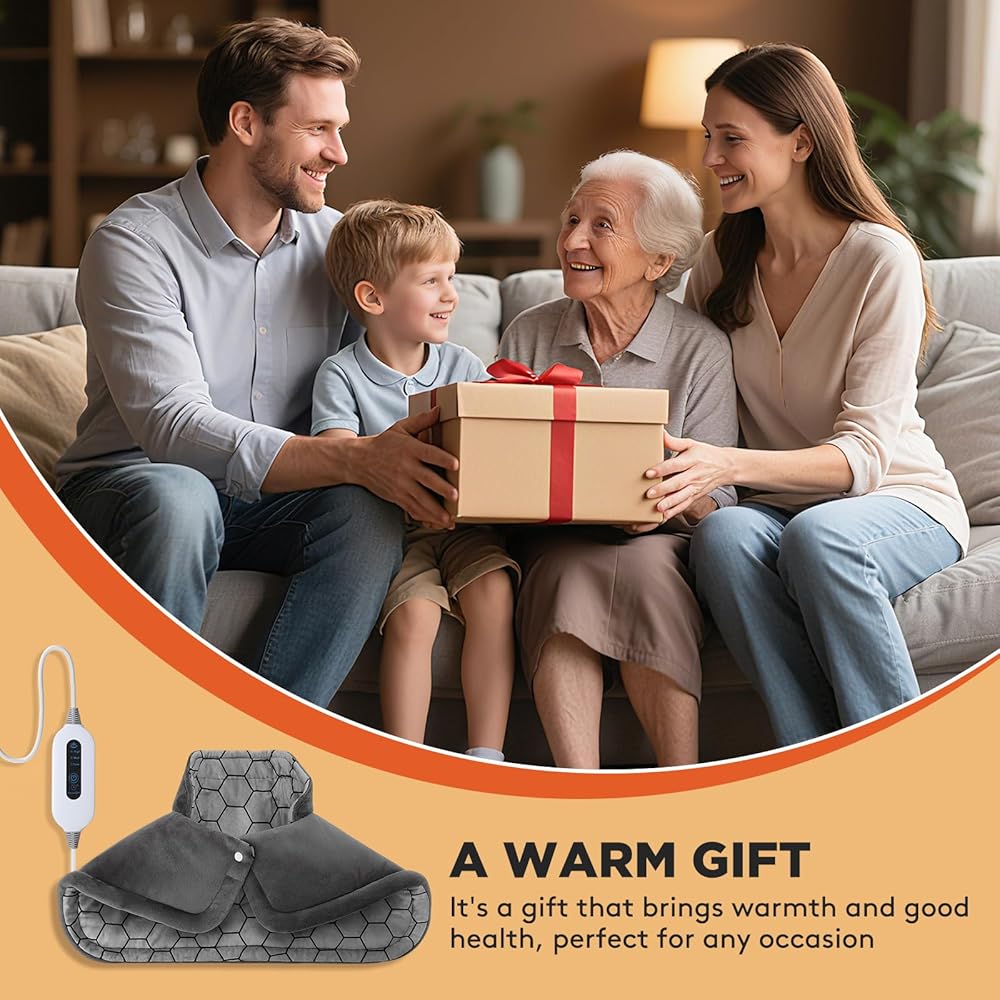 وسادة تدفئة لأكتاف الرقبة الخلفية، عضلات استرخاء كبيرة يمكن ارتداؤها، هدايا عيد ميلاد للنساء والرجال والأم والأب المسنين، 3 إعدادات للحرارة/إيقاف تلقائي آمن لمدة ساعتين، تصميم مريح مقاس 23 بوصة × 17 بوصة - رمادي