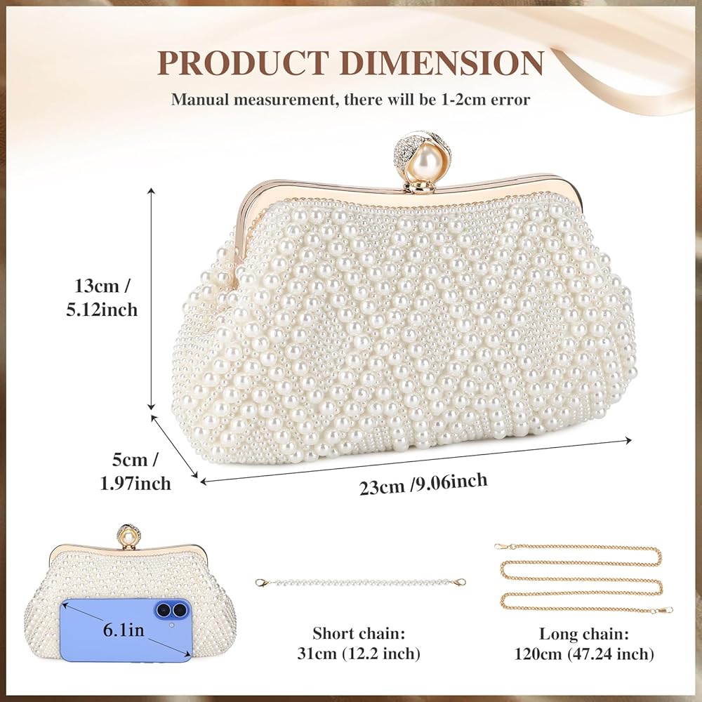 • 【Compact Yet Functional】Size:23x5x13cm(9.06x1.97x5.12inch).The pearl clutch bag can hold mobile phone, lipstick, tiny wallet and a few other small things for hands-free elegance.