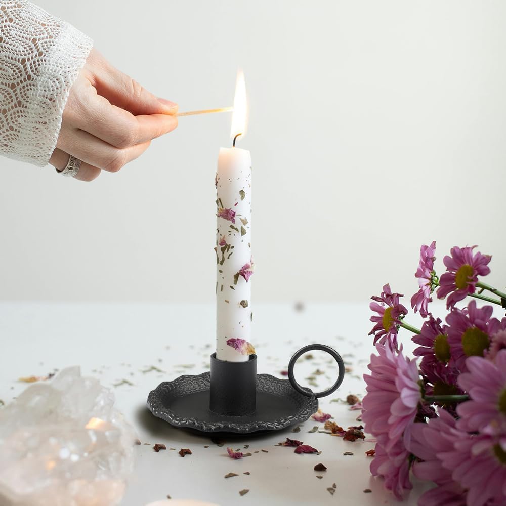 - أنيقة وفريدة من نوعها: تصميم مع جانب الزهور من قاعدة الشمعة، إنها إضافة رائعة لمنزلك.