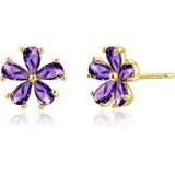 أقراط على شكل زهرة لا تسبب الحساسية للنساء | مجوهرات زركونيا مكعبة مطلية بالذهب عيار 14 قيراط مع عمود من الفضة الإسترليني عيار 925 | هدية للأذنين الحساسة، للاستخدام اليومي والمناسبات