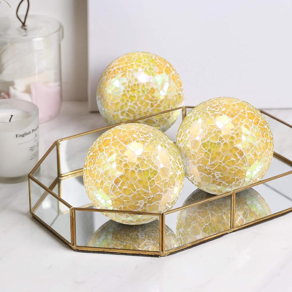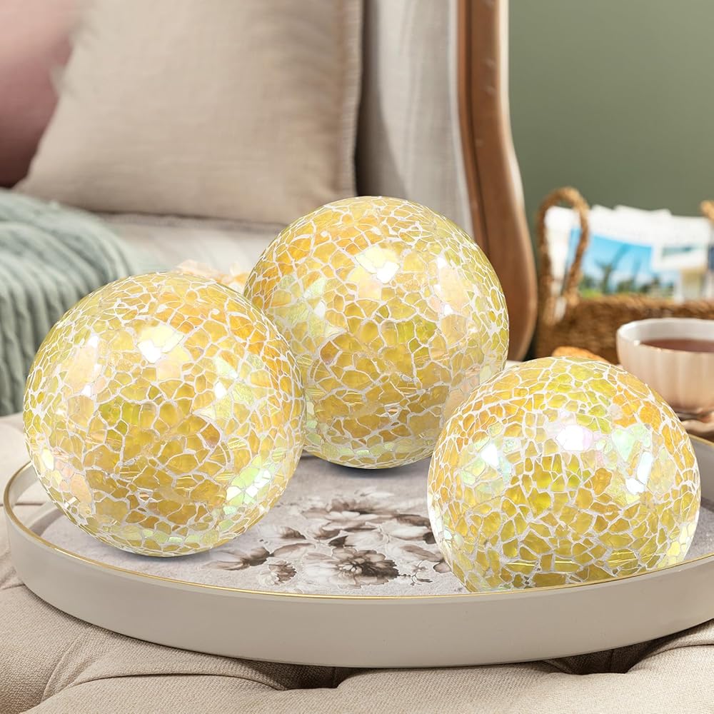 الكرات المزخرفة مناسبة لوضعها على الصينية على الطاولة، أو الرف، أو غرفة المعيشة، أو غرفة النوم، أو غرفة الدراسة، ويمكنها أن تجعل طاولة الطعام أو غرفتك أكثر لمعانًا، ولن تشغل الكثير من المساحة الخاصة بك.