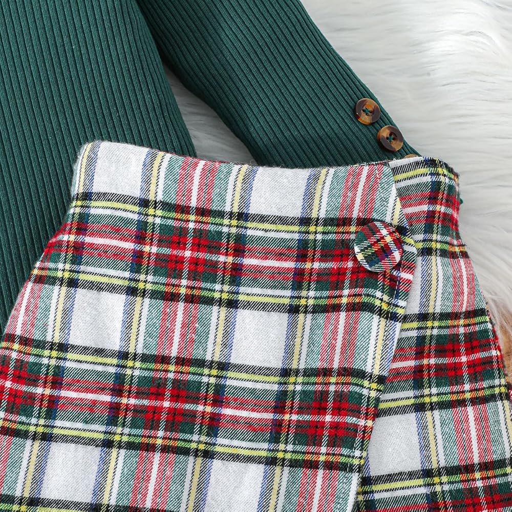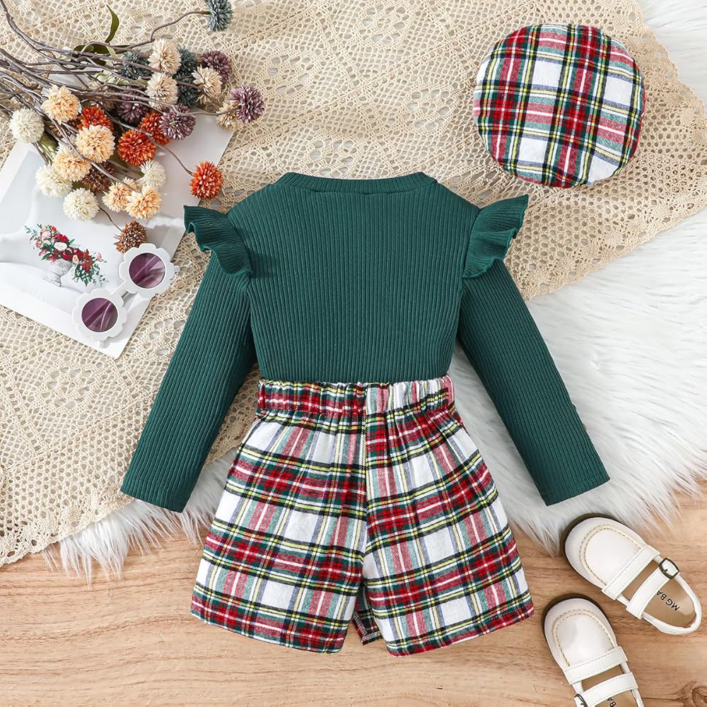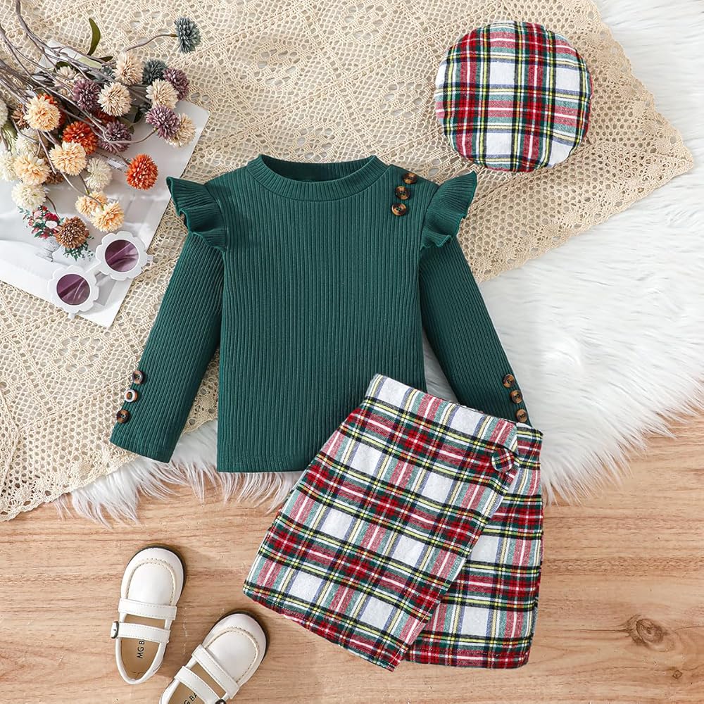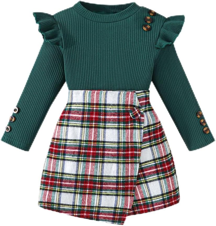 التصميم: تم تصميم سراويل البنات الصغيرة لخريف وشتاء كمجموعتين من قطعتين تسمح لك بفصل القمصان عن شورتات التنورة للفتيات. توفر لك المزيد من خيارات المطابقة المختلفة. قميص بأكمام كشكش وشورت تنورة منقوش جميل.