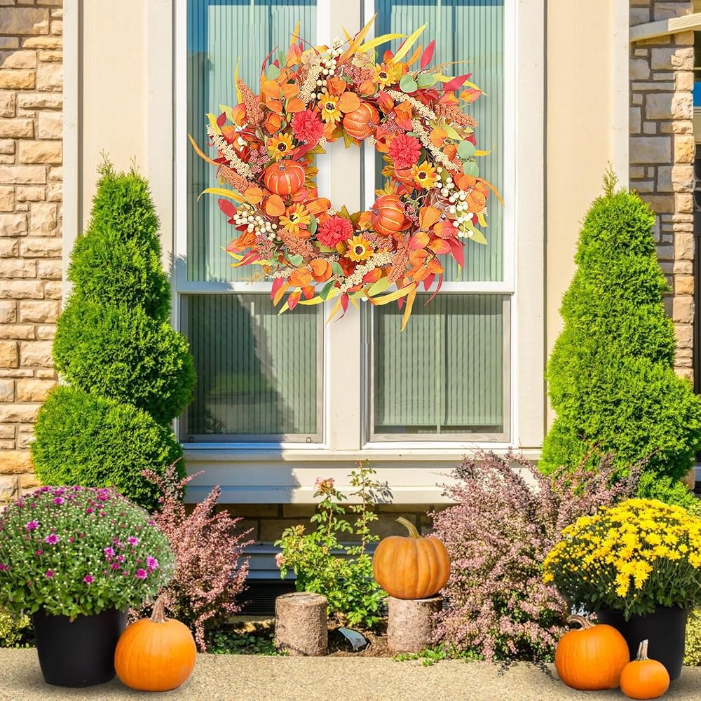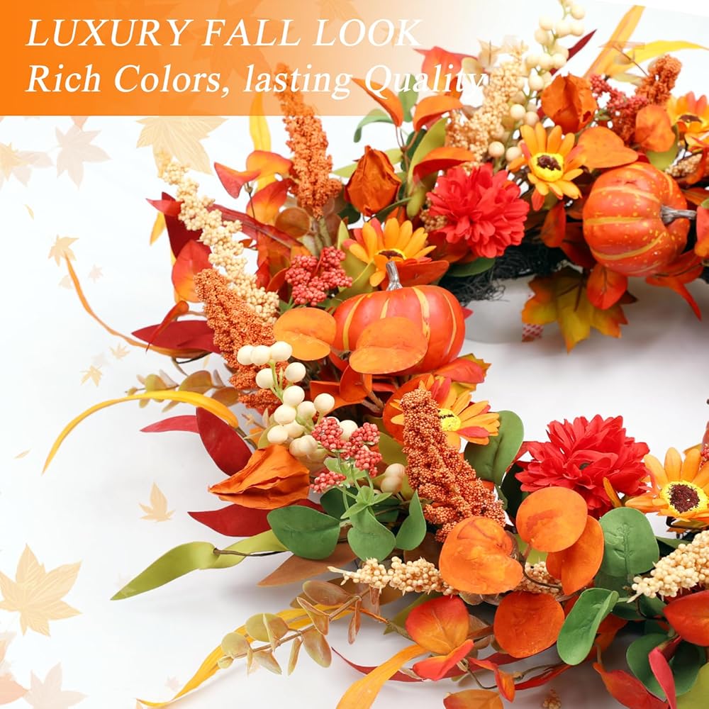أفضل اختيار لهدية: إكليل باب الخريف هذا هو هدية مثالية للعطلات، ومناسب بشكل خاص لحفلات الزفاف واحتفالات الخريف وعيد الشكر وموسم عيد الميلاد والهالوين. أسلوبه الطبيعي والدافئ مناسب أيضًا كهدية بمناسبة الانتقال إلى منزل جديد، أو تحية في يوم المعلم أو أمنية عيد ميلاد لأحد كبار السن، مما يضيف إحساسًا بالاحتفال الموسمي إلى كل لحظة خاصة.