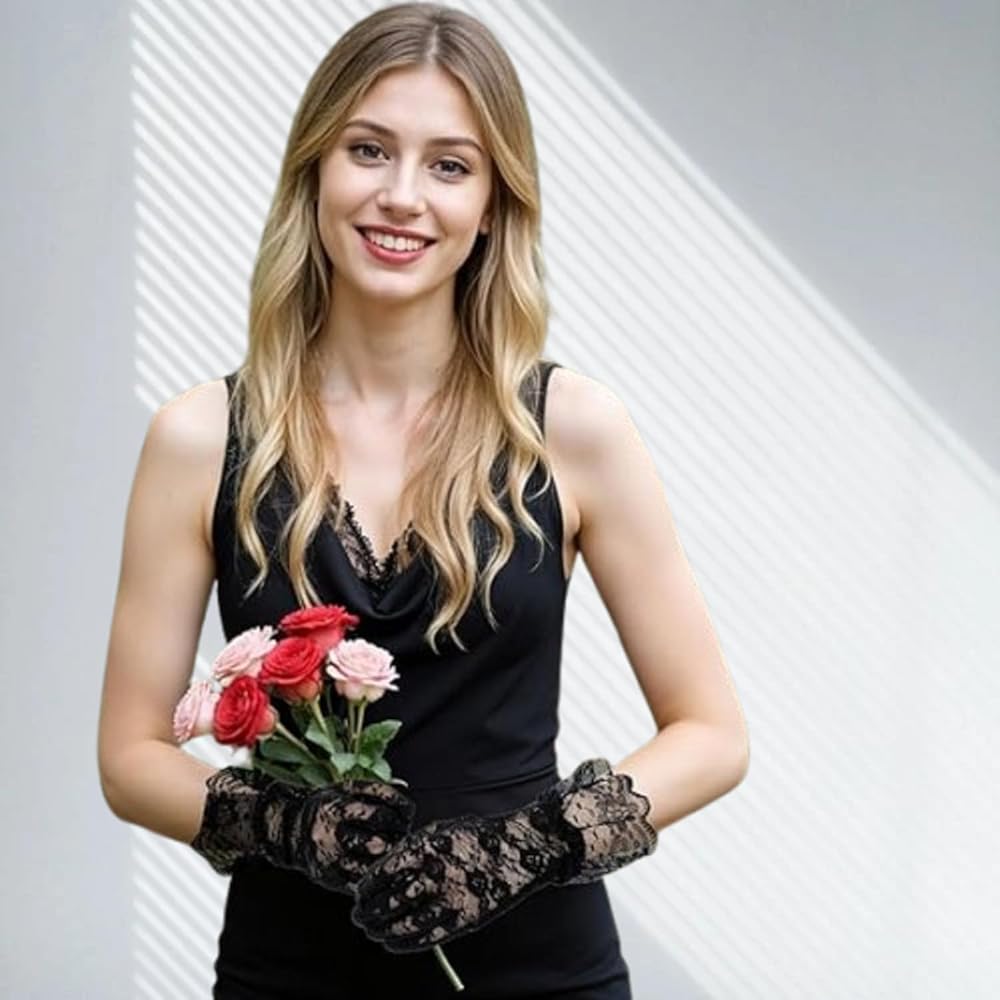 • تصميم كلاسيكي أنيق: تتميز بحرفية الدانتيل الرائعة وأنماط متطورة، تضيف هذه القفازات لمسة من الفخامة المستوحاة من الطراز العتيق، مما يعزز بشكل مثالي حضورك الرشيق والمكرر