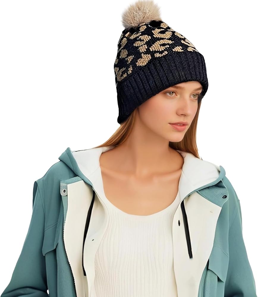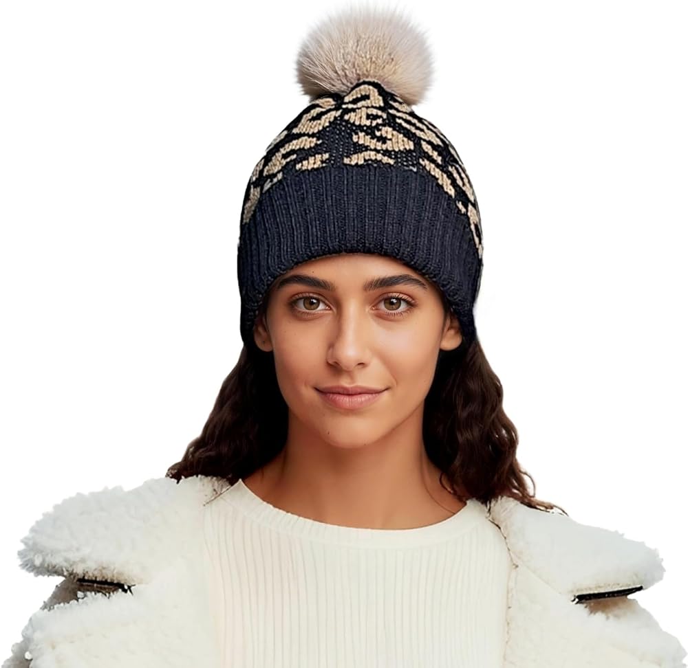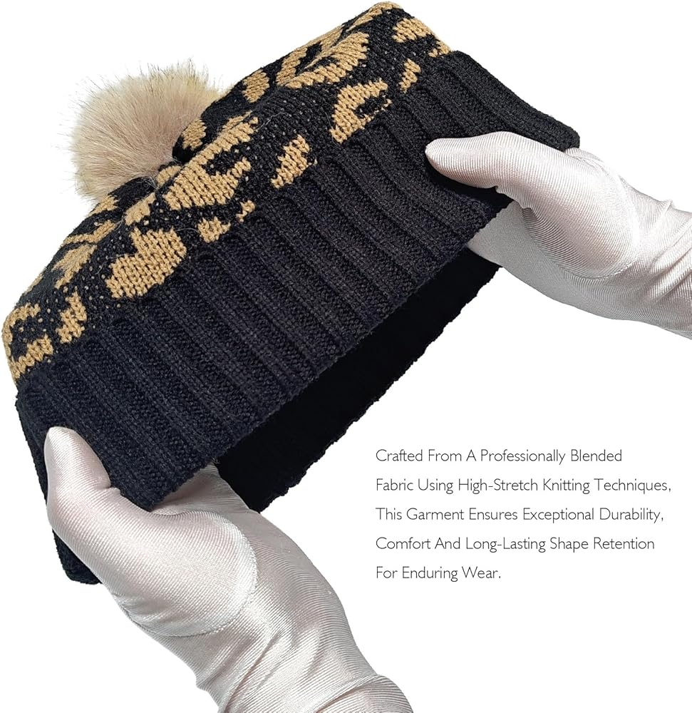 1.Material: The cable-knit hat is made of Acrylic Fibres, with faux fur pompom on the top of the hat which is thick and comfortable. Can make you feel warm and fashion.