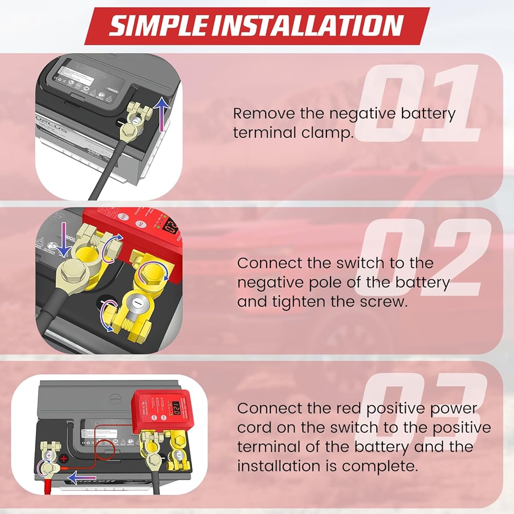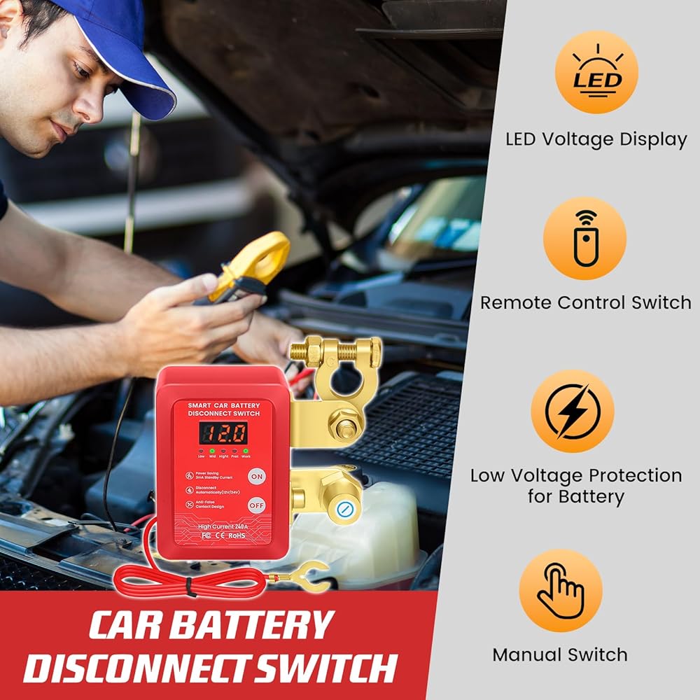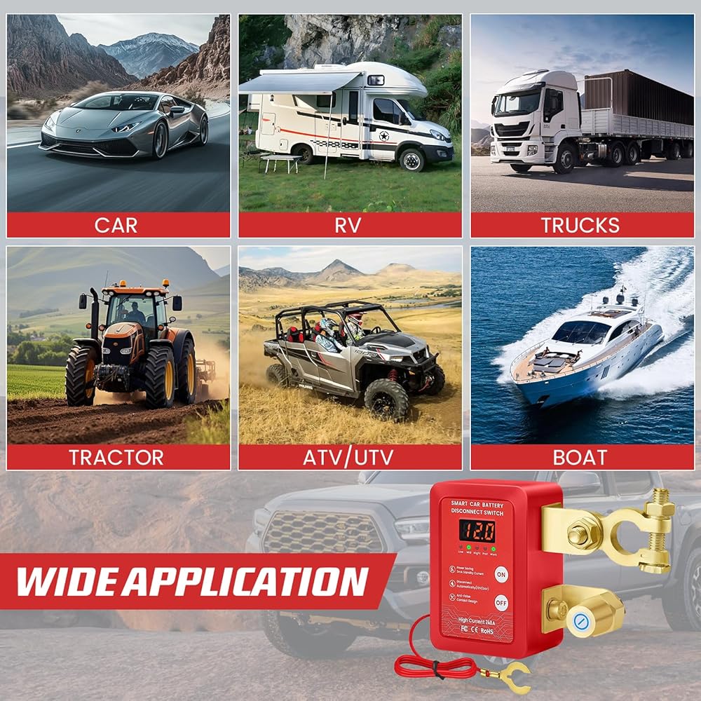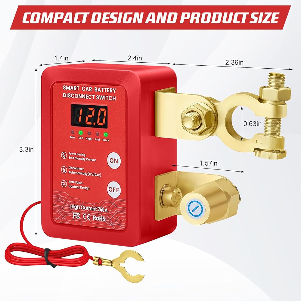 توافق عالمي 12 فولت - مفتاح قتل بطارية السيارة يناسب السيارات والمركبات الترفيهية والقوارب والجرارات (حجم المنشور: 17-20 مم). يتضمن حشوات قابلة للتعديل للمحطات الصغيرة الحجم.