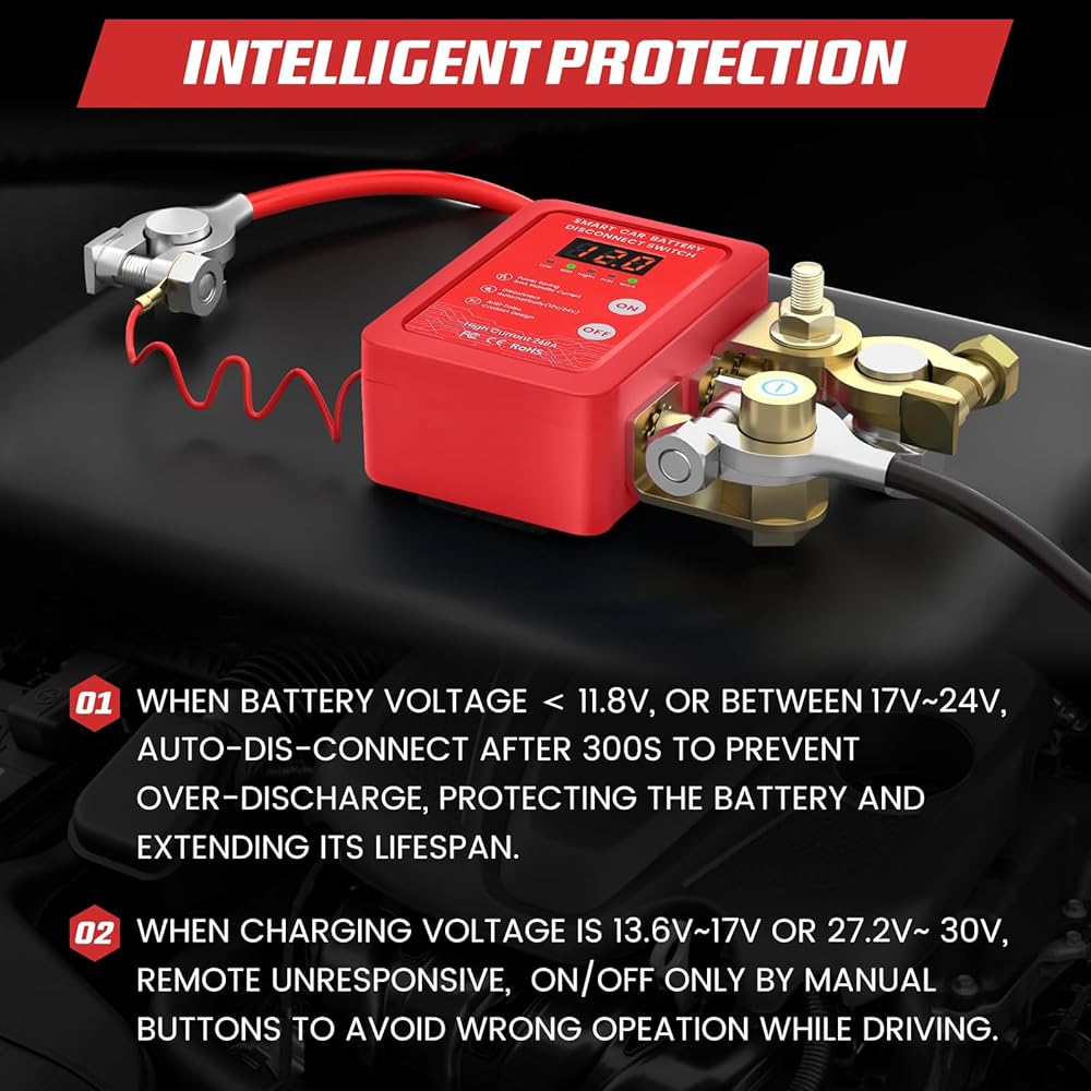 صفر استنزاف البطارية - تيار الاستعداد منخفض للغاية 0.001 أمبير يحافظ على البطارية لمدة تزيد عن 18 شهرًا. يتم قطع الاتصال تلقائيًا عند 11.8 فولت لمنع تلف التفريغ العميق.