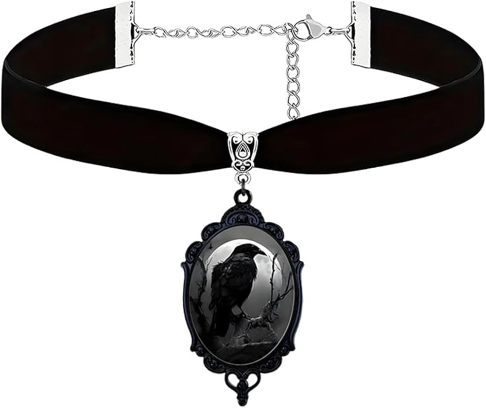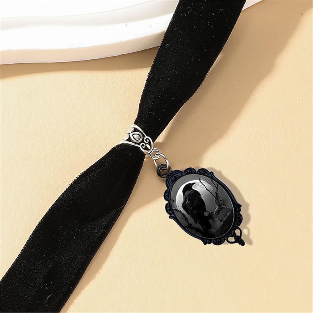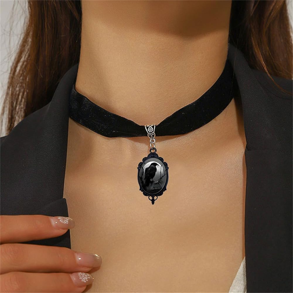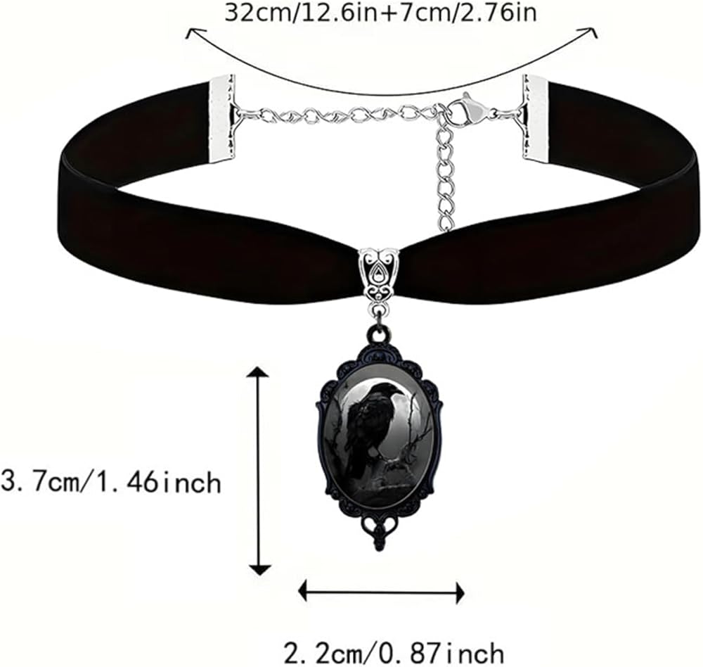 • GOTHIC DESIGN: Features an elegant black raven cameo centerpiece set against a velvet choker band, perfect for Victorian-inspired looks