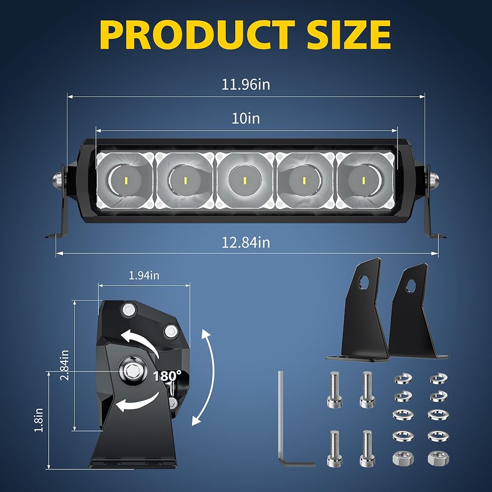 【شريط إضاءة أبيض وأصفر عالي السطوع】تتميز مصابيح الطرق الوعرة هذه بعاكس للضوء 30 درجة لتوفير إضاءة عالية التركيز وطويلة المدى، بينما يوفر شعاع الضوء الكاشف 120 درجة تعرضًا لمنطقة أوسع. توفر لك شعاع مشط البقع والفيضان تجربة قيادة مريحة وآمنة. يستخدم شريط إضاءة العمل رقائق LED الألمانية الرائدة في الصناعة، إجمالي المخرجات 45 وات من الطاقة (6500 كلفن و3000 كلفن)، فإنه يأخذ الاستخدام الكامل لطاقة LED يوفر دائمًا المزيد من السطوع في نفس الوقت. القوة.