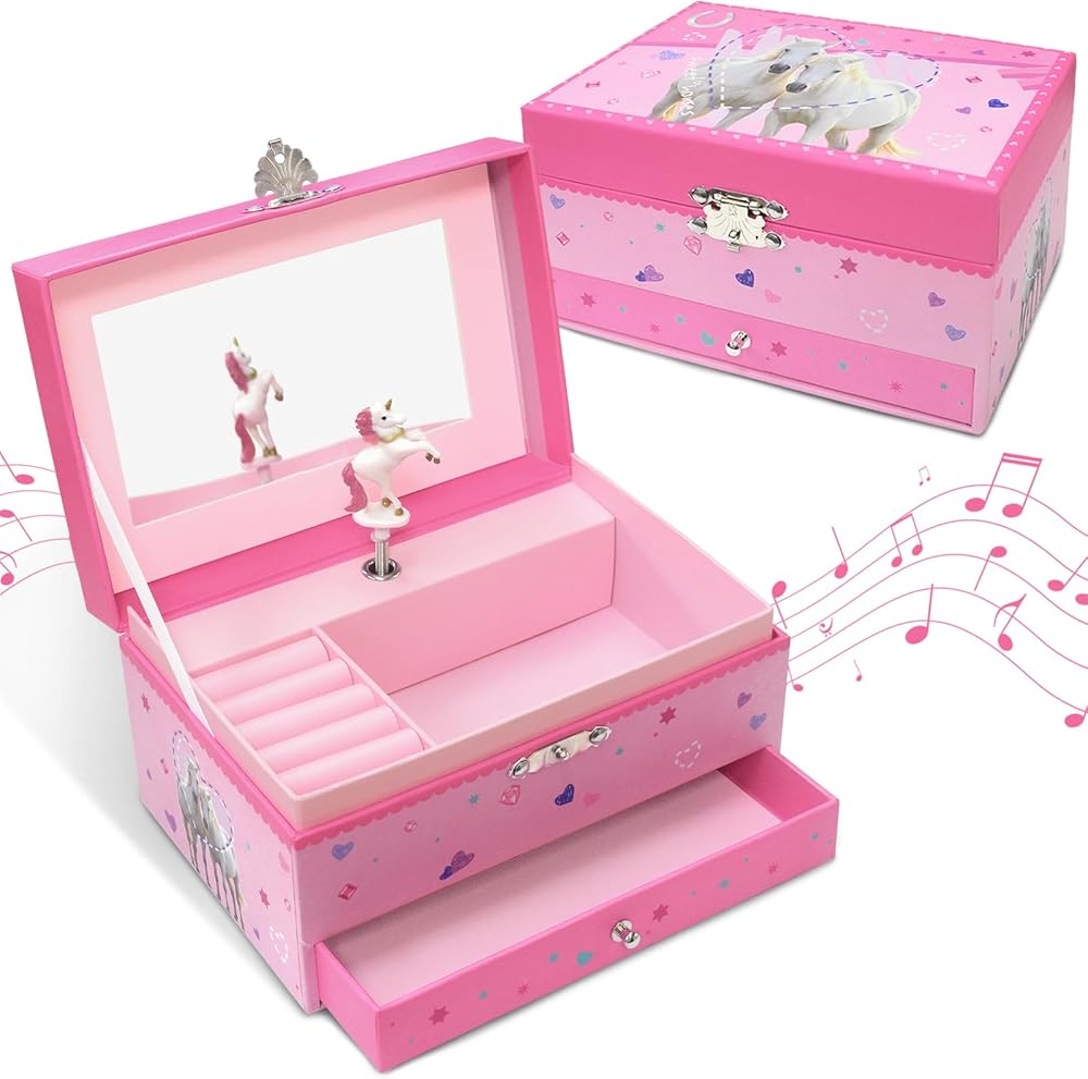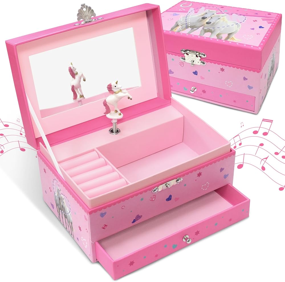 【هدية مثالية للفتيات】 هدية مثالية للفتيات من سن 3 إلى 10 سنوات! سواء كان عيد ميلاد أو عيد الميلاد أو أي مناسبة خاصة، فإن صندوق المجوهرات للفتيات هذا بمثابة منظم مجوهرات عملي للفتيات وتذكار جميل سوف تعتز به لسنوات.